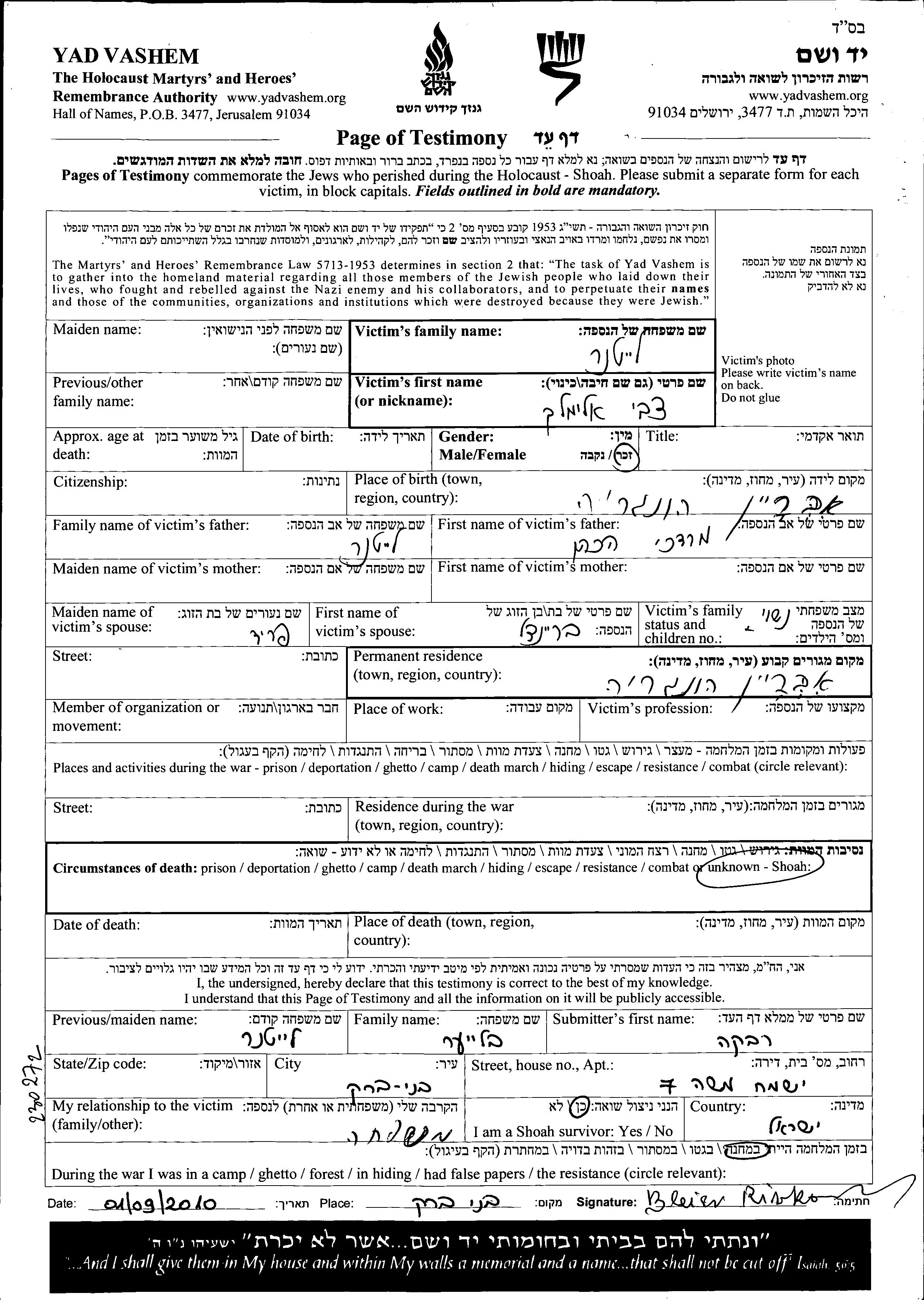 Yad Vashem - Pages of Testimony Names Memorial Collection