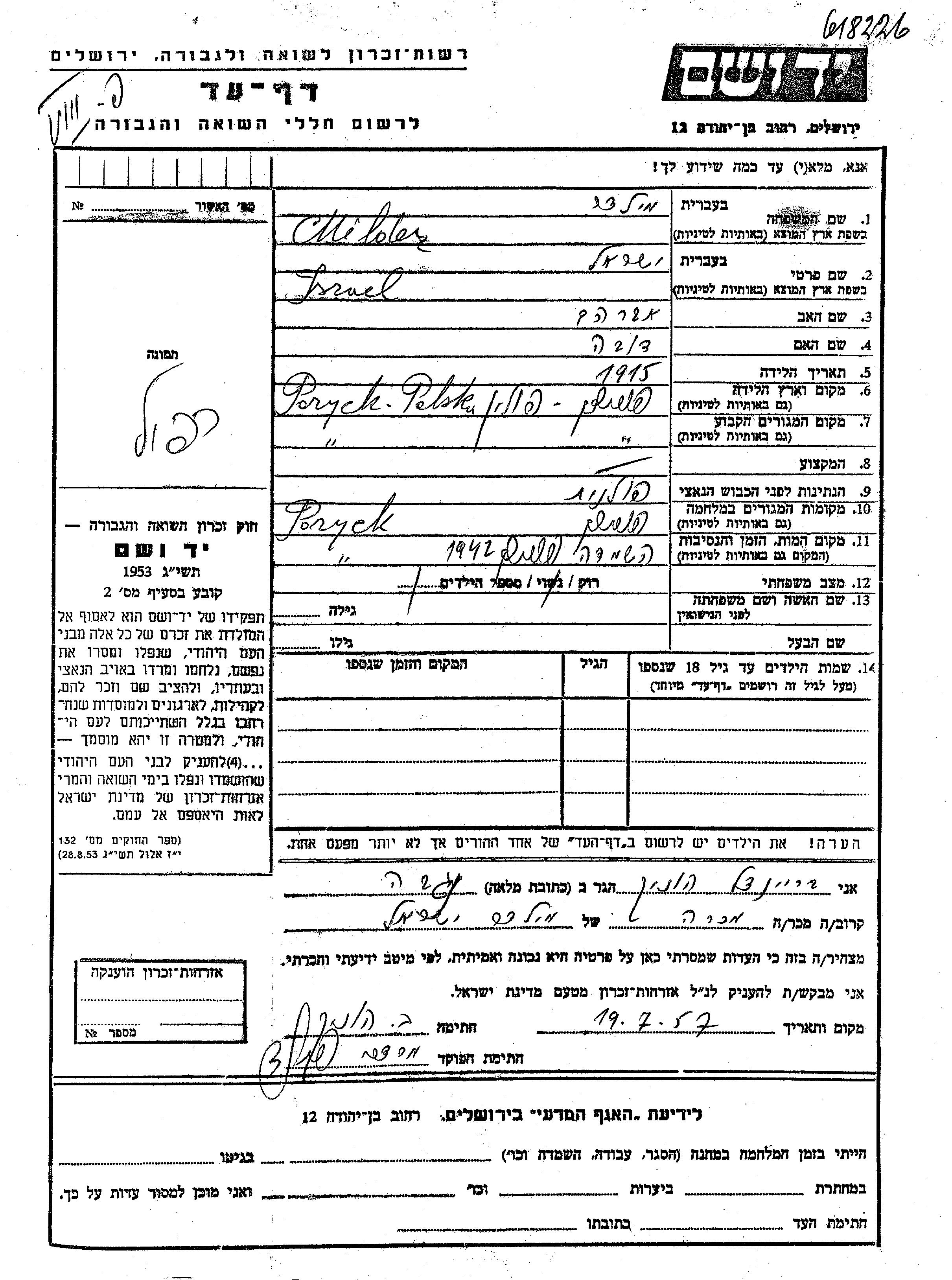 Yad Vashem - Pages of Testimony Names Memorial Collection