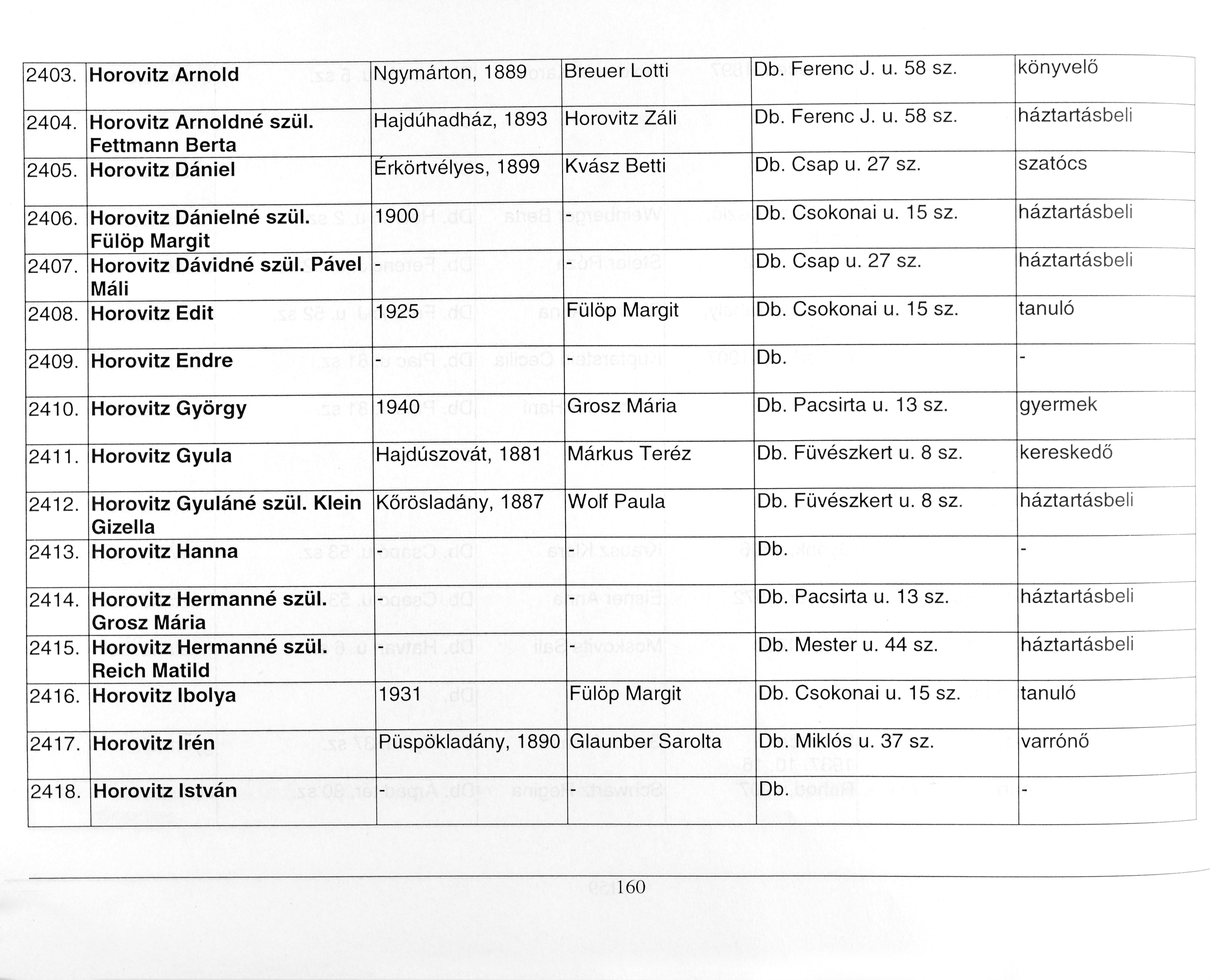 Horovitz | Matild | Debrecen, Hongrie | Liste de personnes persécutées | |