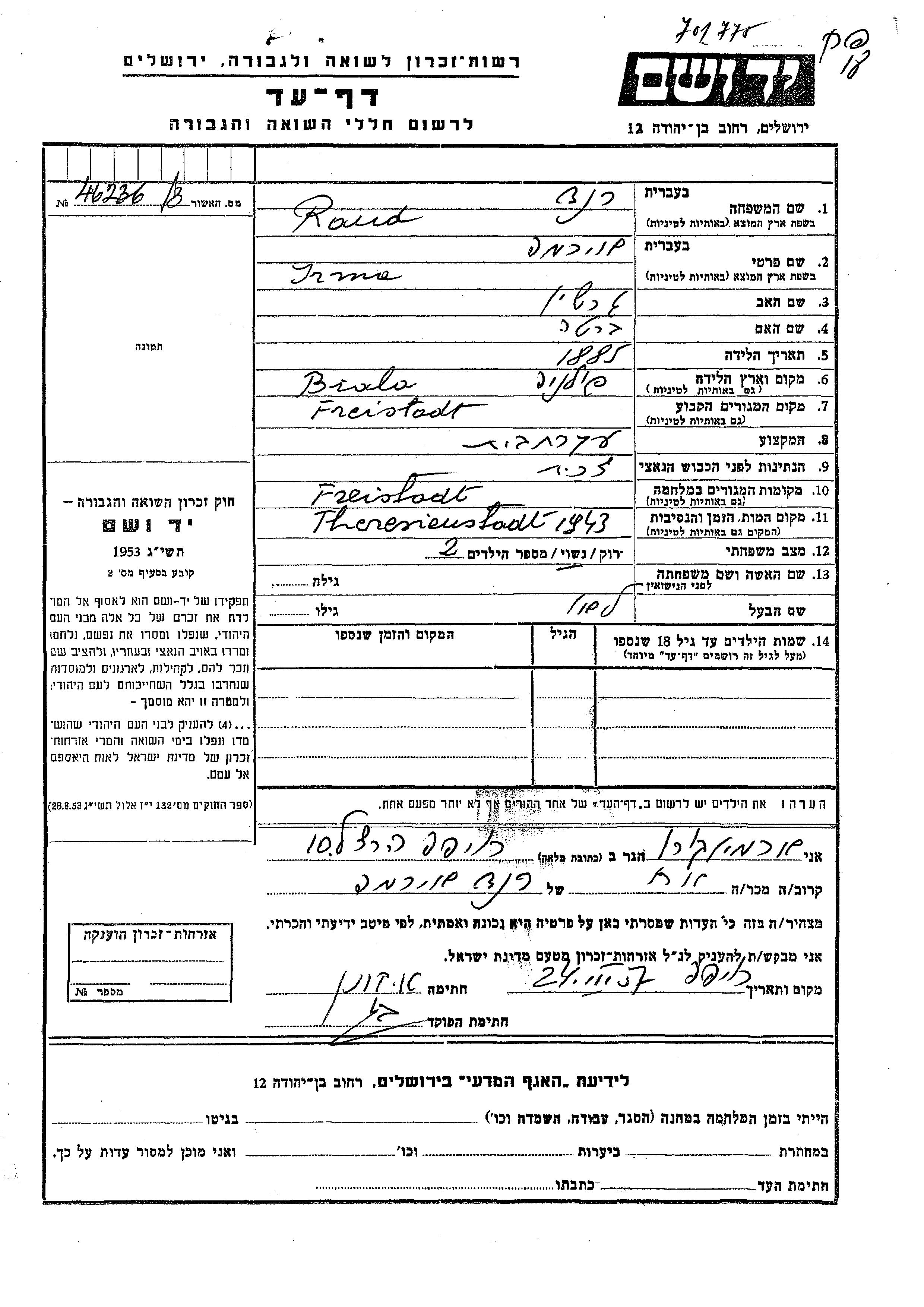 Yad Vashem - Pages of Testimony Names Memorial Collection