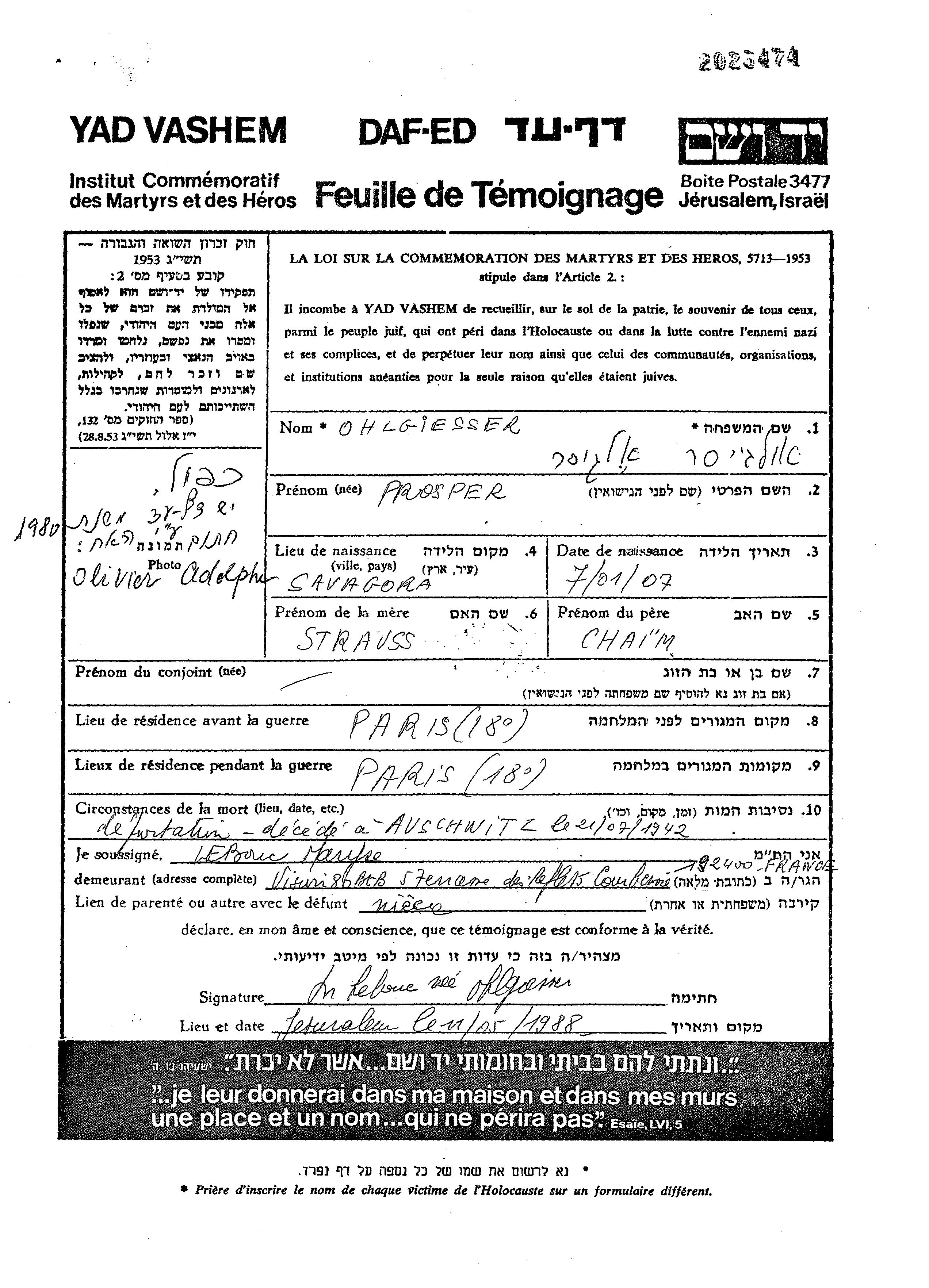 Prosper a été assassiné pendant la Shoah. Lieu de la mort: Auschwitz, Pologne.