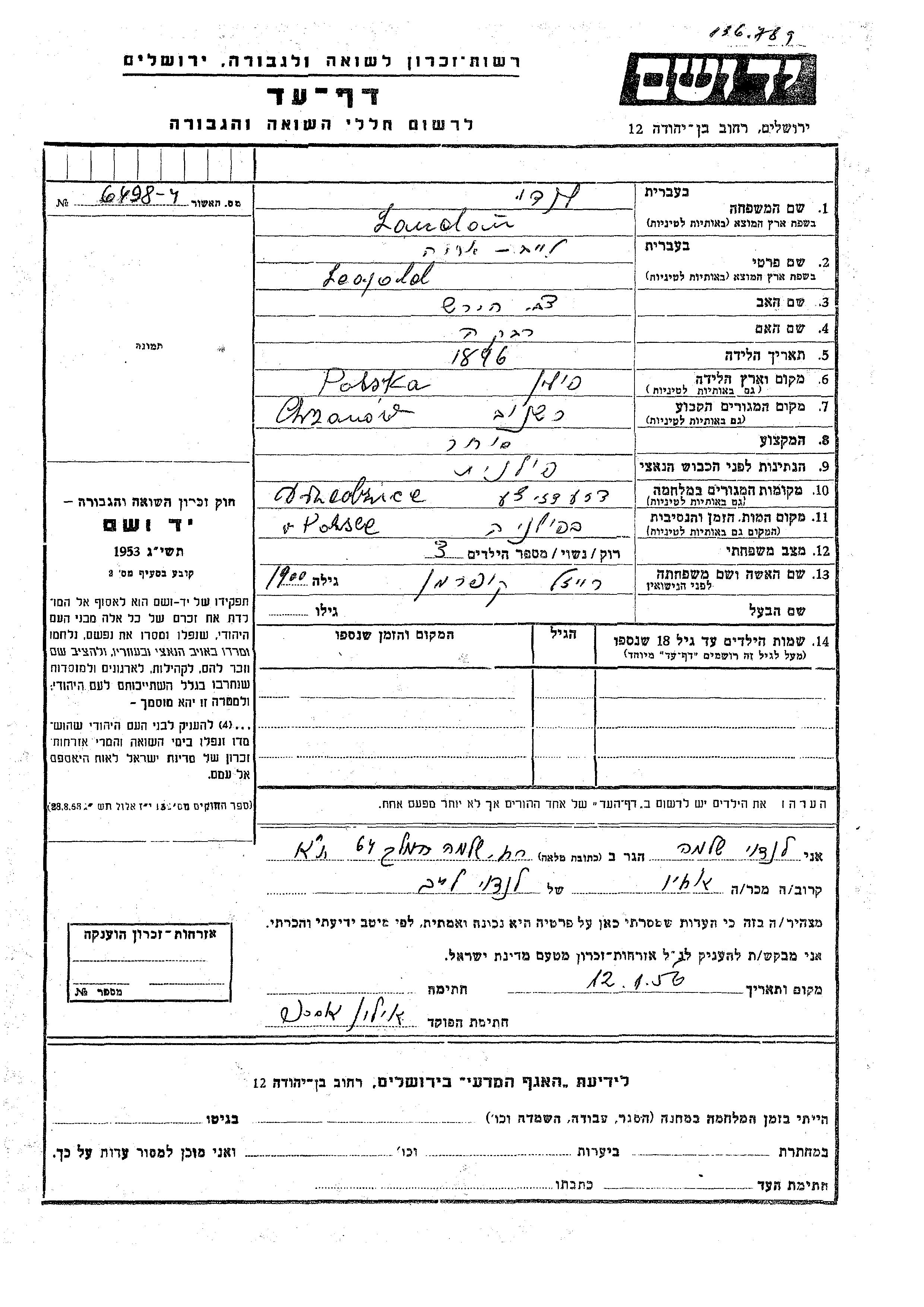 Landoi Laudon | Leopold Leib Arie | 1896 | Chzanow, Pologne | Feuille de témoignage |