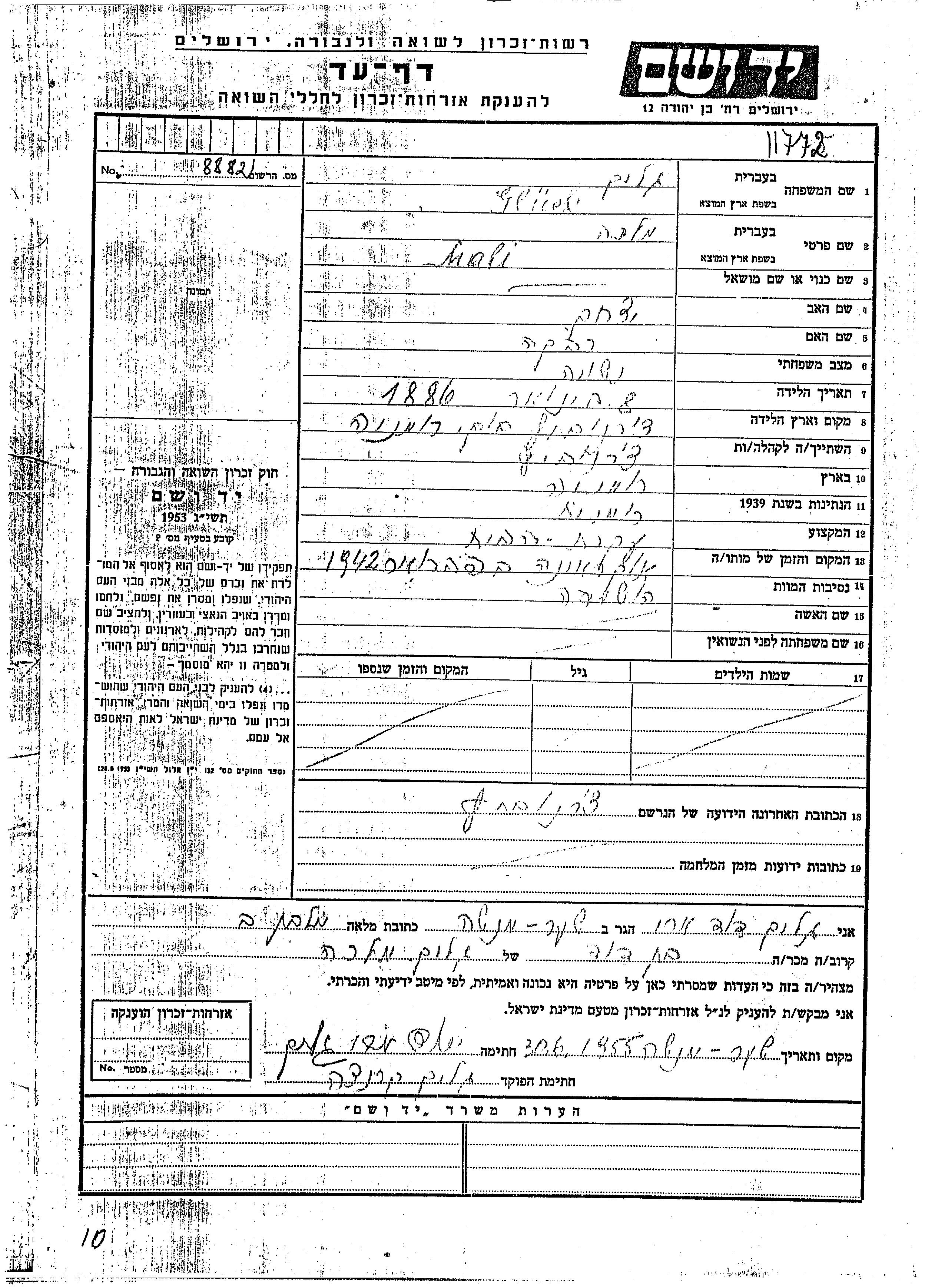 Yad Vashem - Pages of Testimony Names Memorial Collection