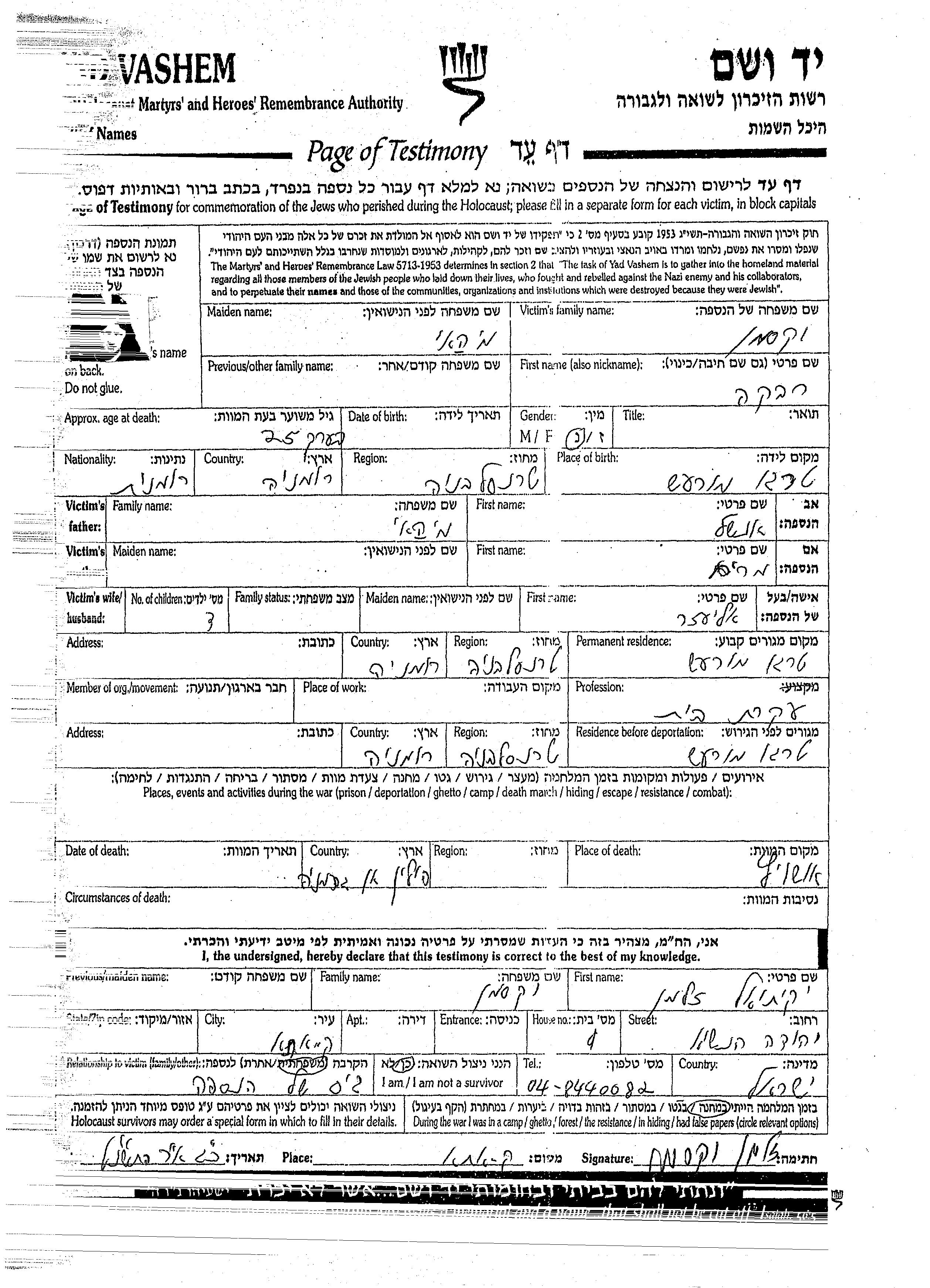 Yad Vashem - Pages of Testimony Names Memorial Collection