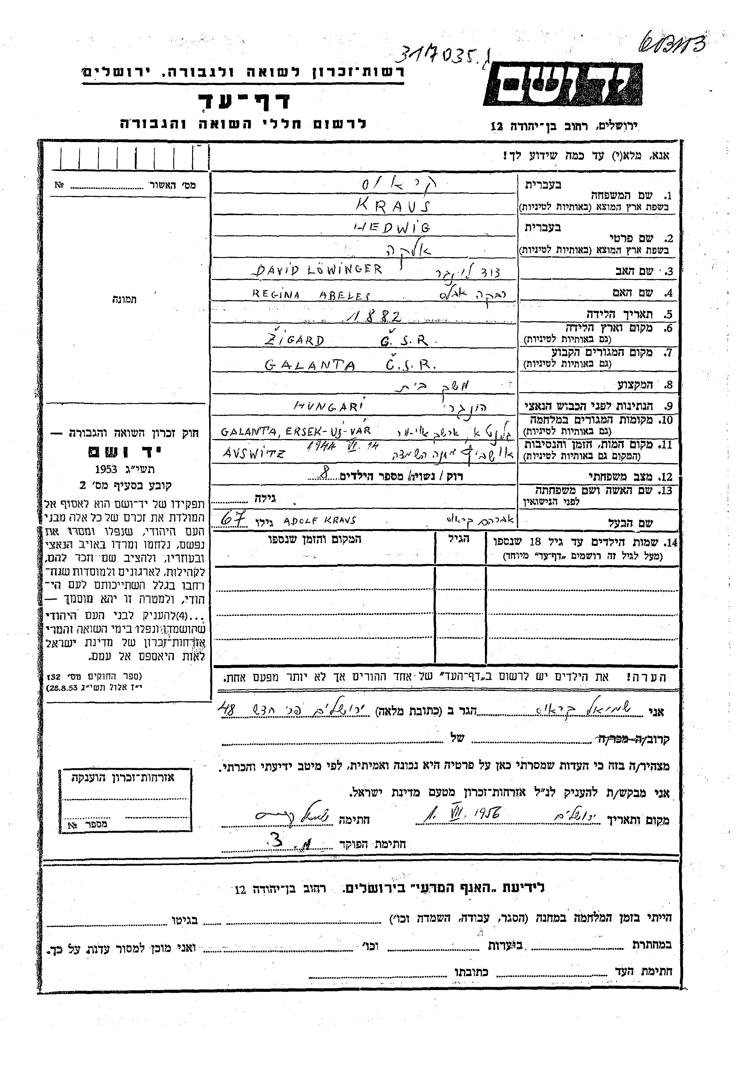 Yad Vashem - Pages of Testimony Names Memorial Collection