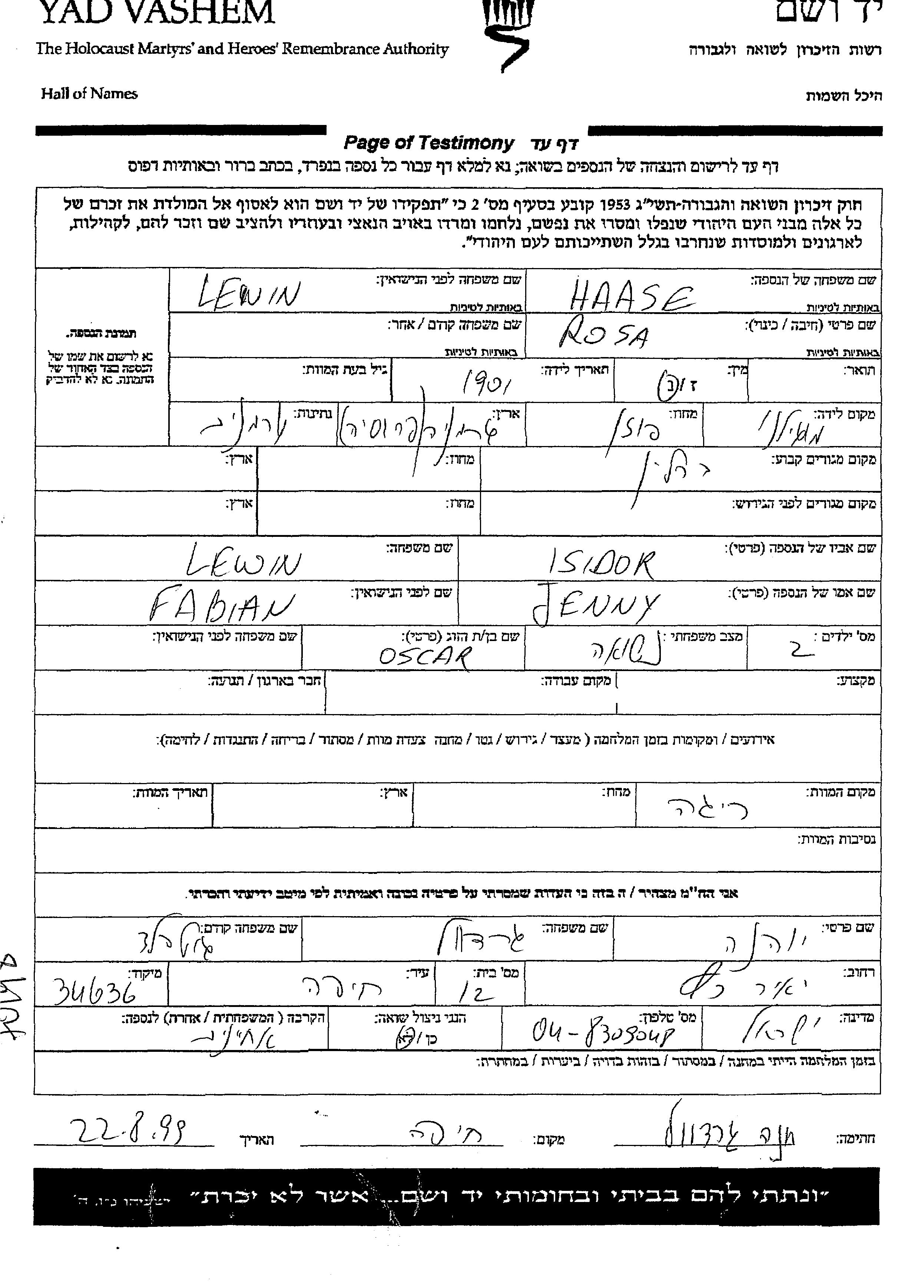 Yad Vashem - Pages of Testimony Names Memorial Collection