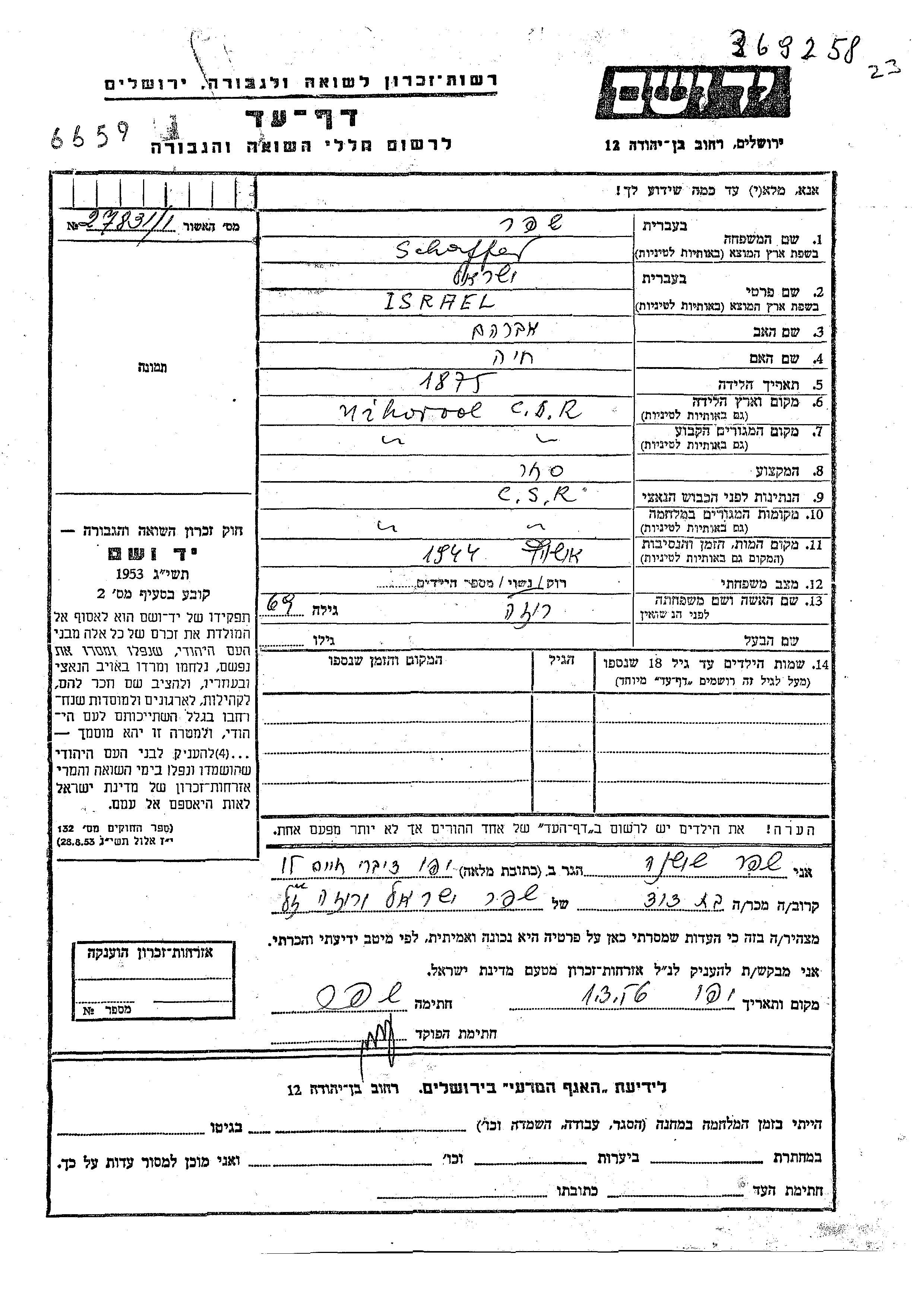 Yisrael a été assassiné pendant la Shoah. Lieu de la mort: Auschwitz, Pologne en 1944.