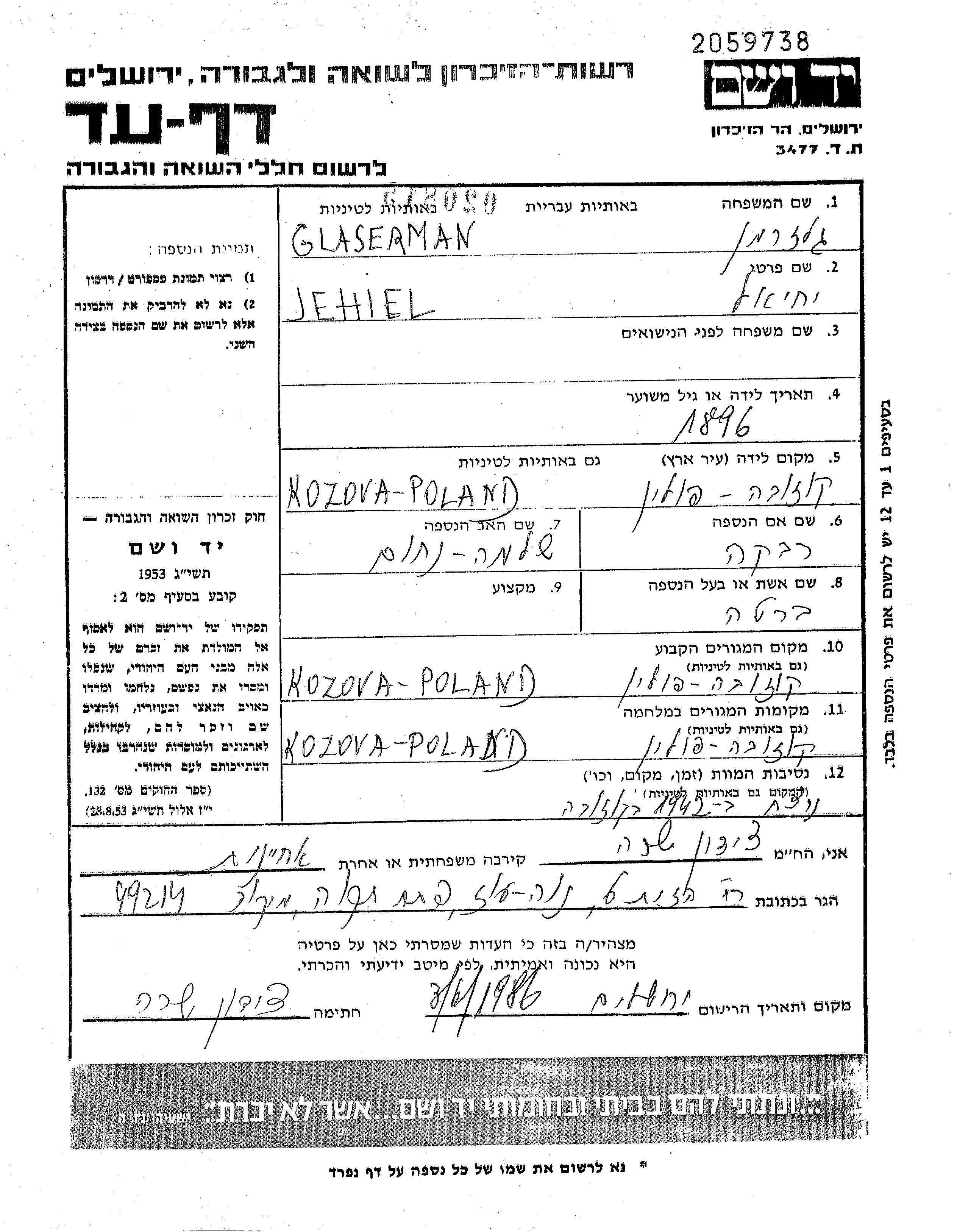 Yad Vashem - Pages of Testimony Names Memorial Collection