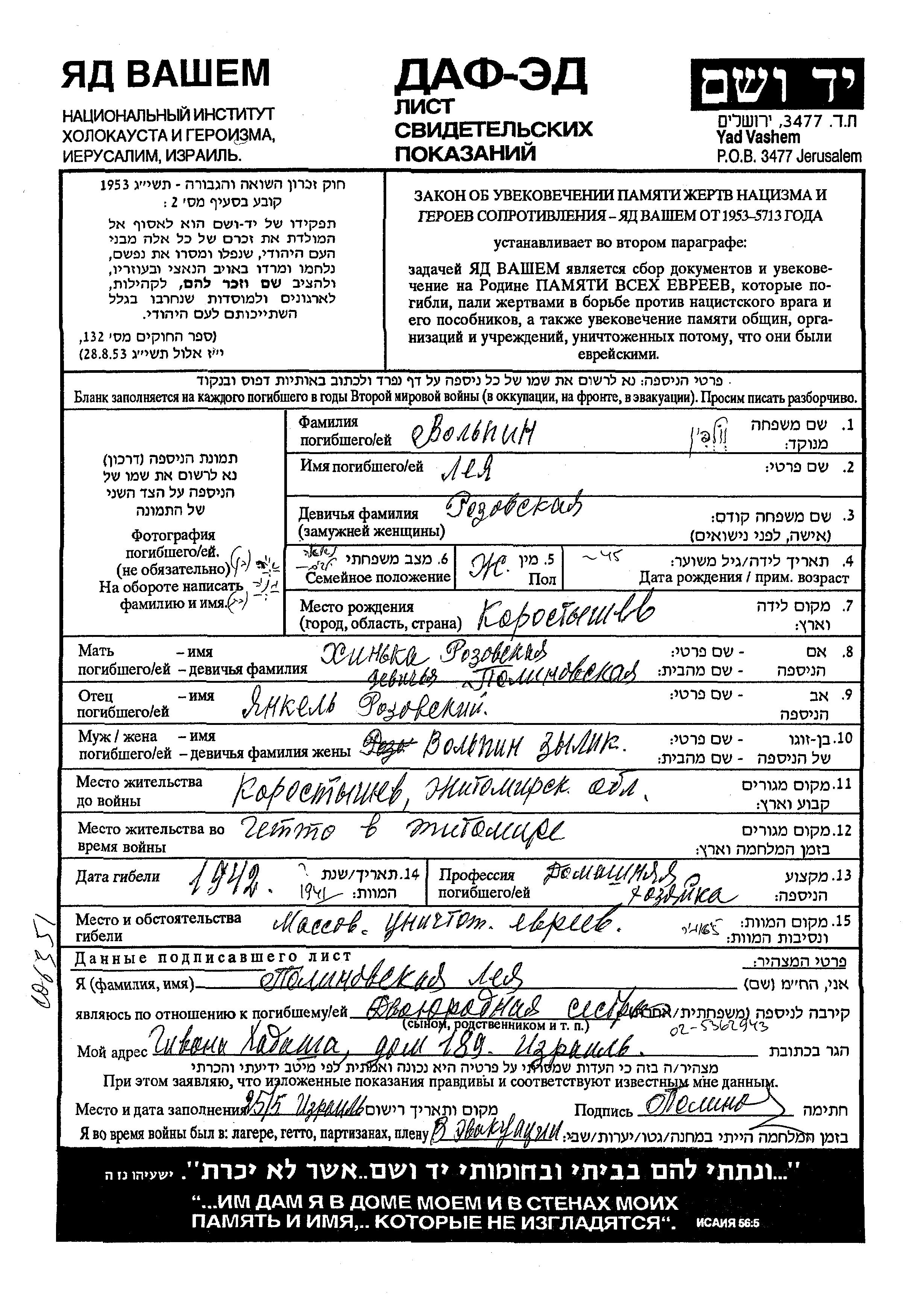 Yad Vashem - Pages of Testimony Names Memorial Collection