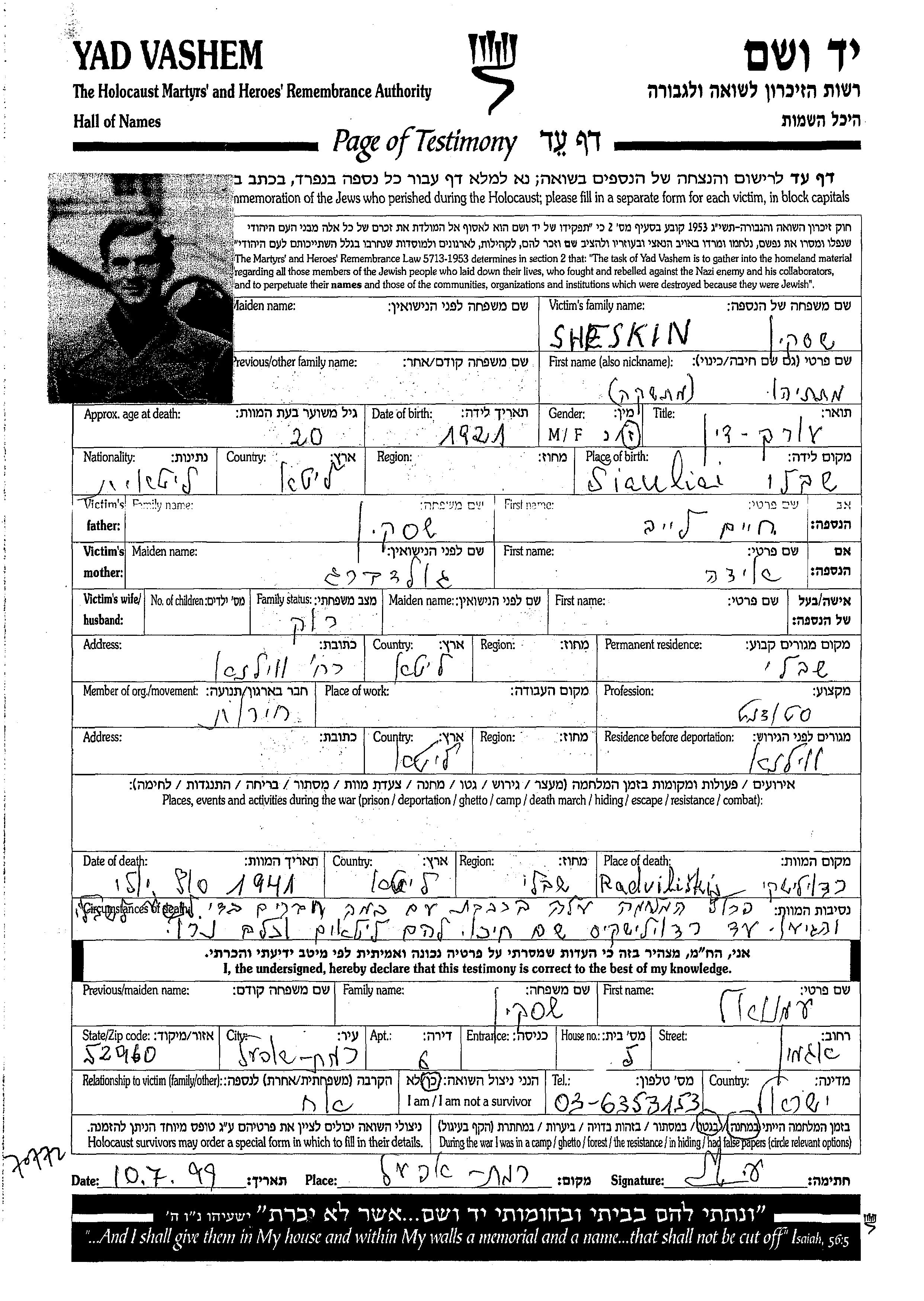 Recherche par date de la mort pendant la période de la Shoah: 1933-1945. Sélectionnez 'Exact'; dans la liste pour rechercher l'année exacte, ou sélectionner '+/- 2 ans'; ou '+/- 5 ans