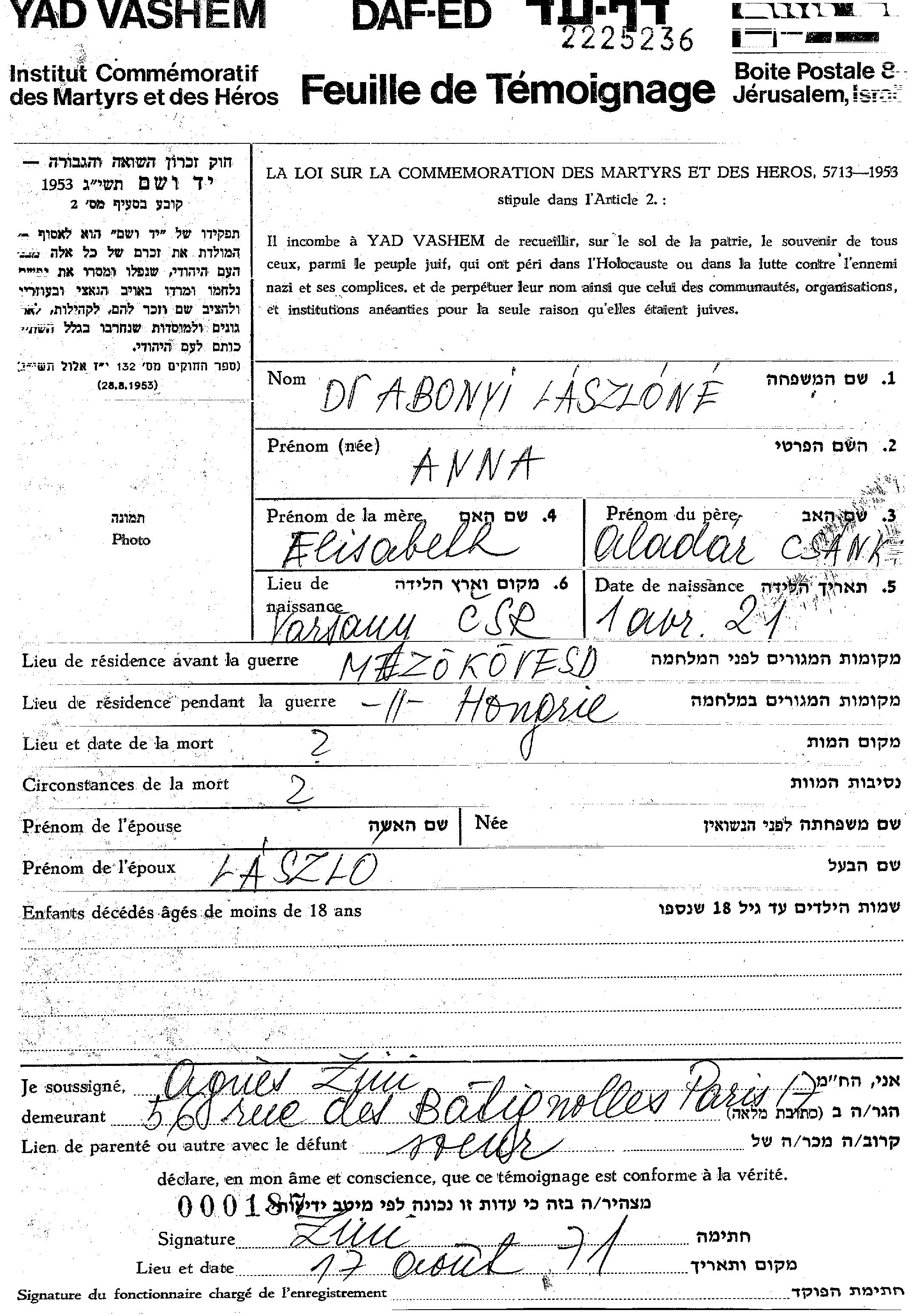 Recherche par nom du dépositeur de la Feuille de témoignage. Cette recherché indique aussi les noms de jeunes filles.