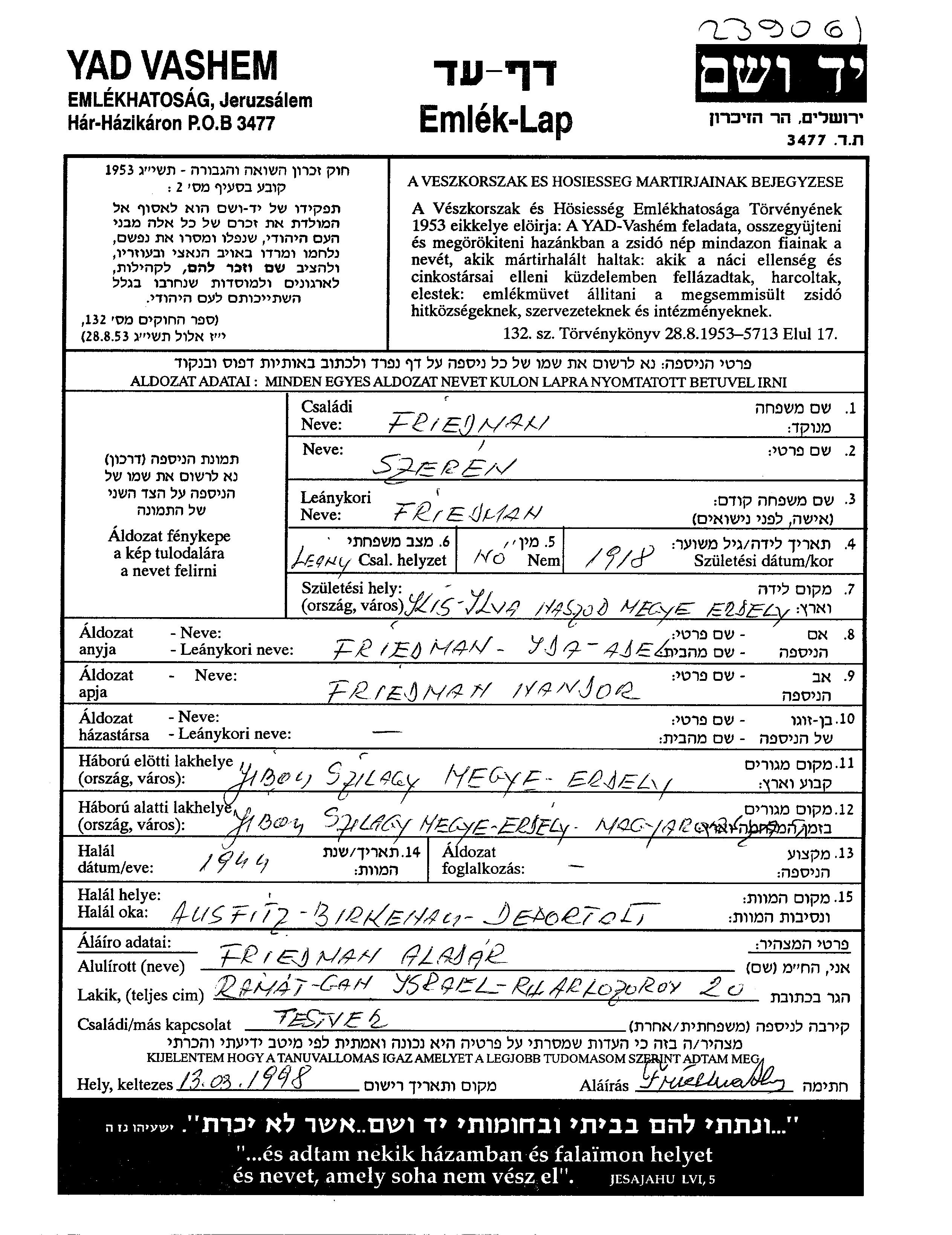 Recherche par date de la mort pendant la période de la Shoah: 1933-1945. Sélectionnez 'Exact'; dans la liste pour rechercher l'année exacte, ou sélectionner '+/- 2 ans'; ou '+/- 5 ans
