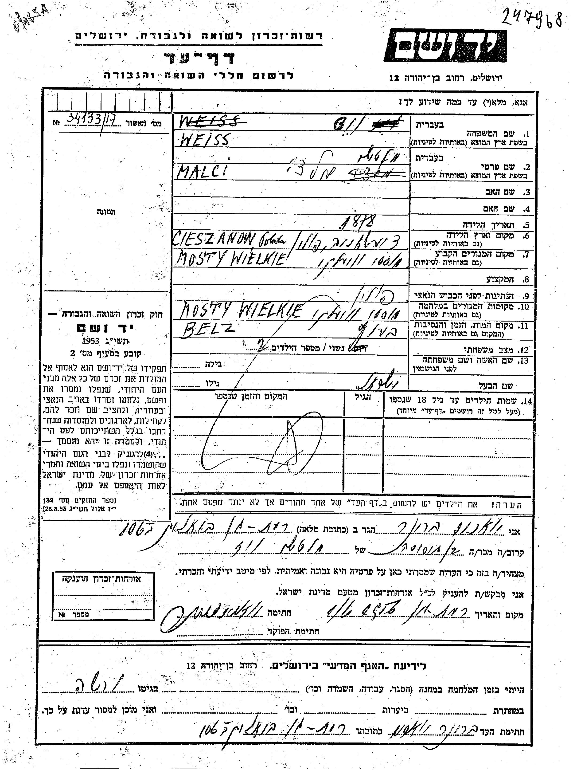 Yad Vashem - Pages of Testimony Names Memorial Collection