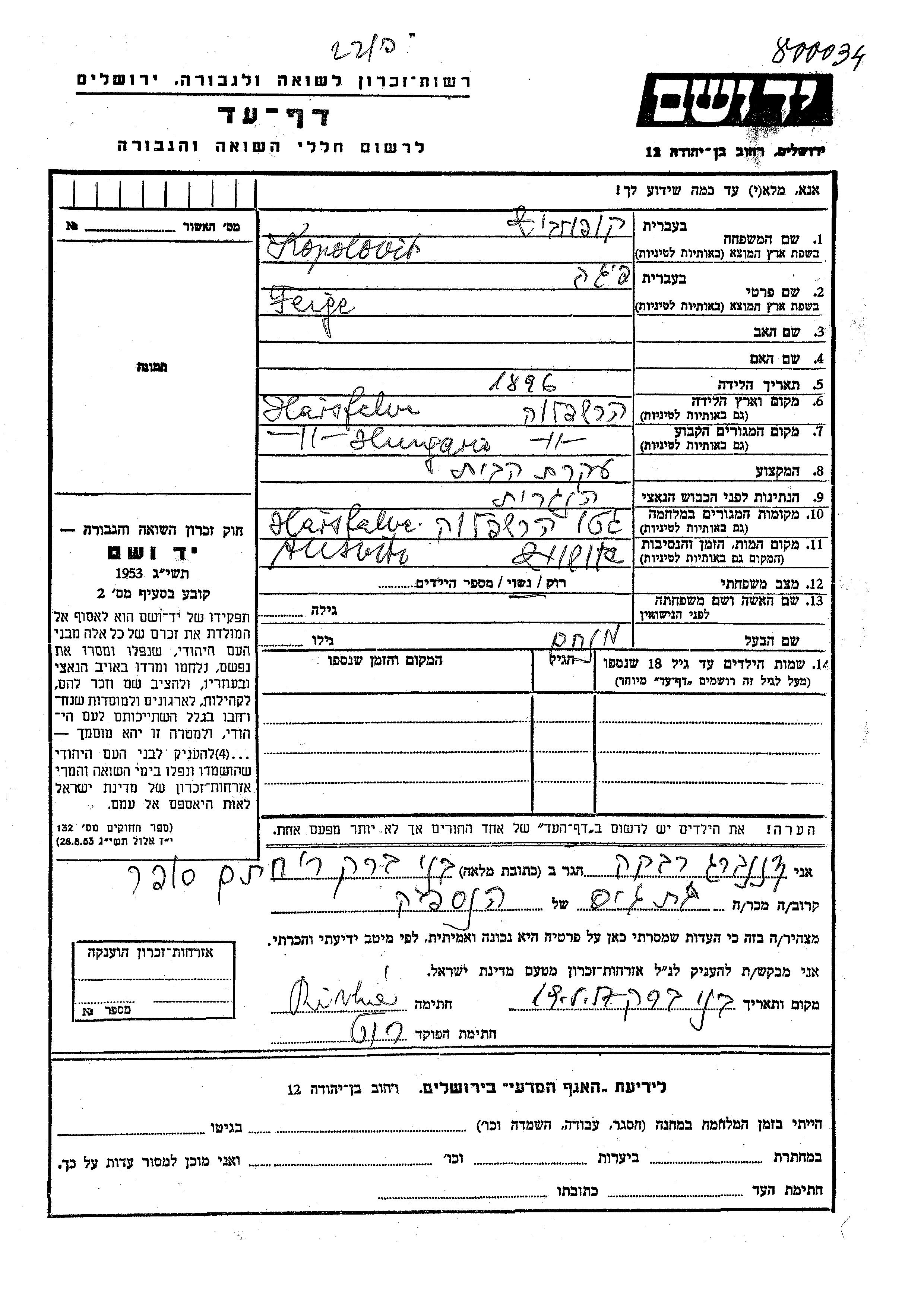 Yad Vashem - Pages of Testimony Names Memorial Collection