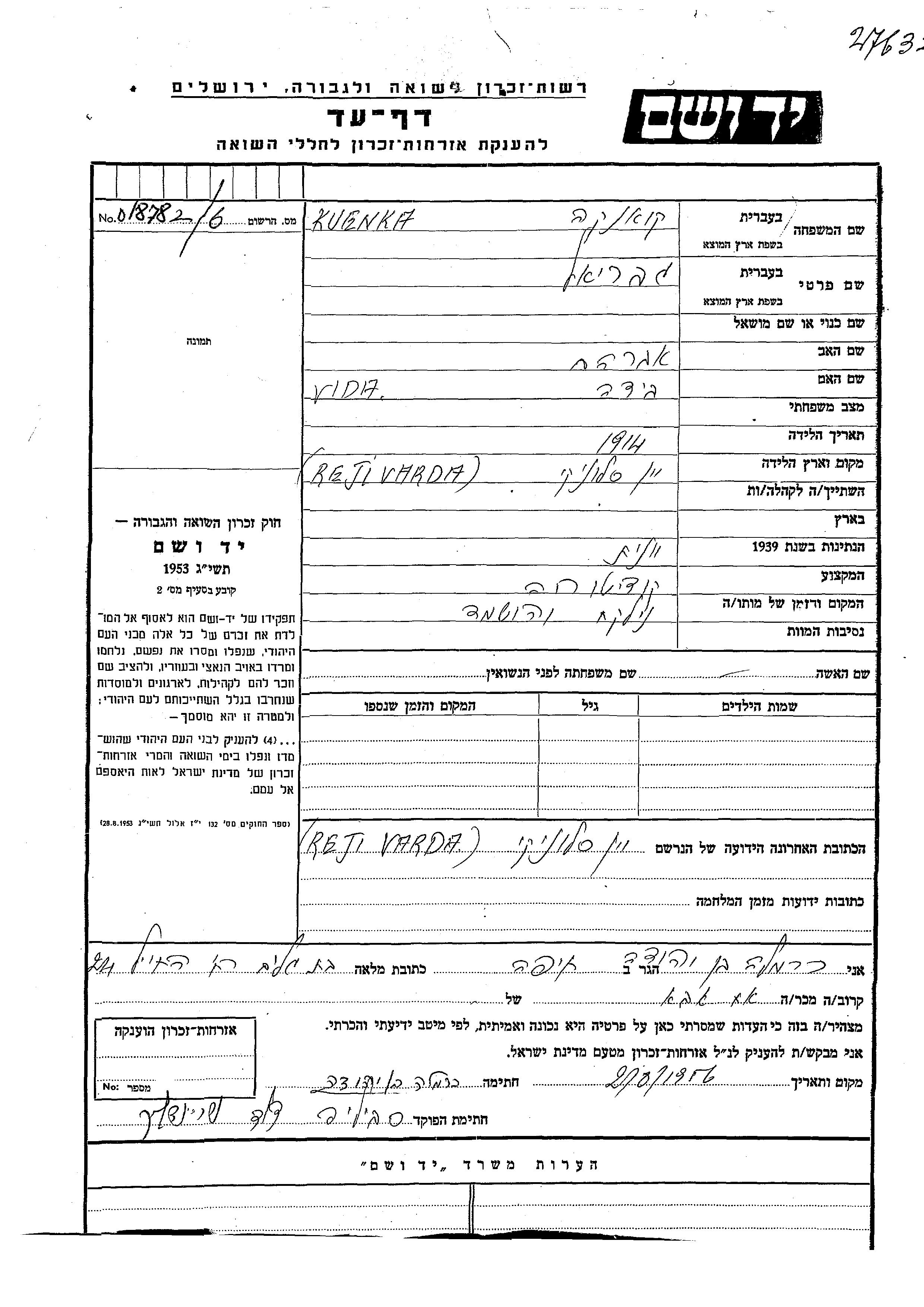Yad Vashem - Pages of Testimony Names Memorial Collection