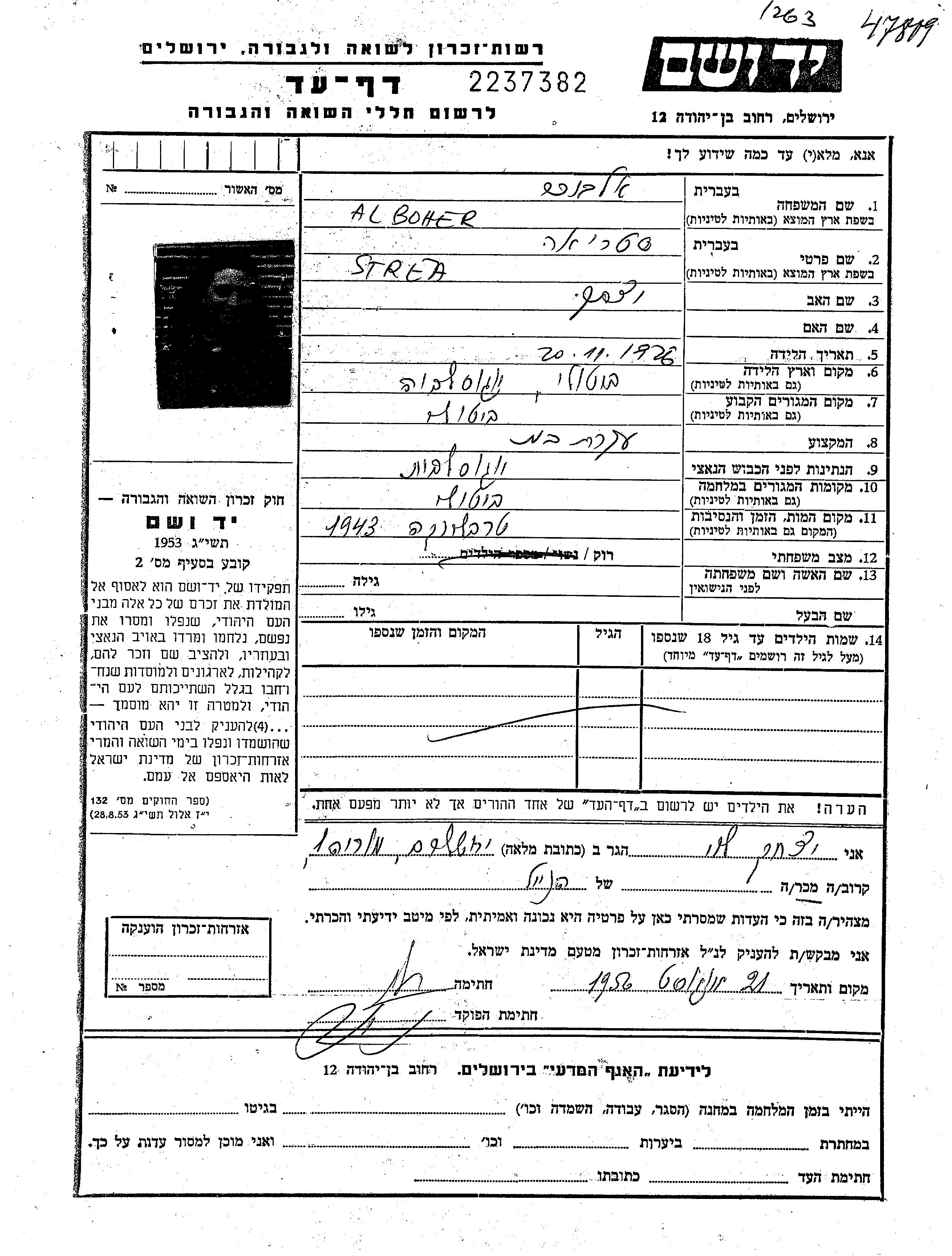 Albokher Streya 1926 Bitola, Yugoslavie Liste de personnes persécutées