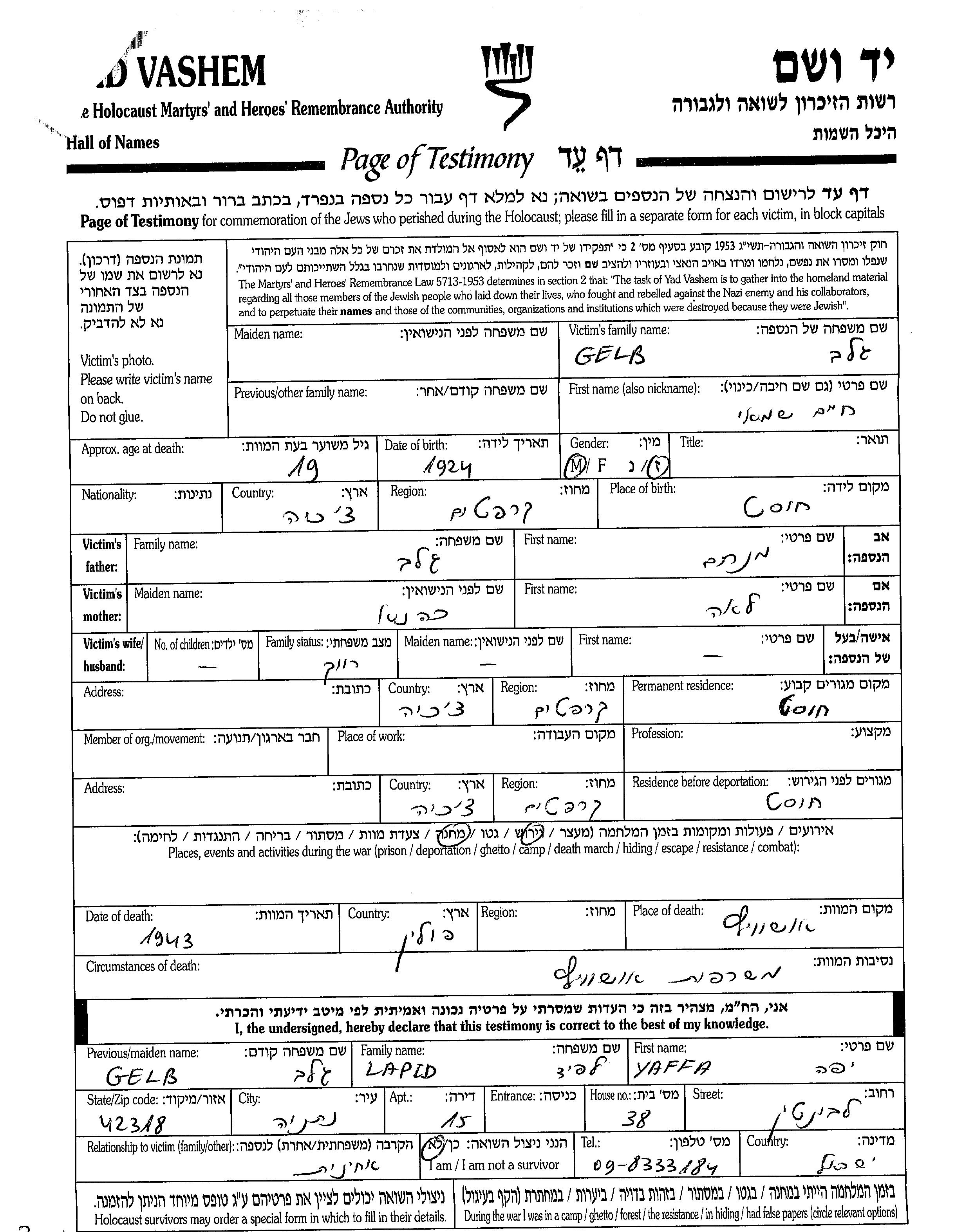 Yad Vashem - Pages of Testimony Names Memorial Collection