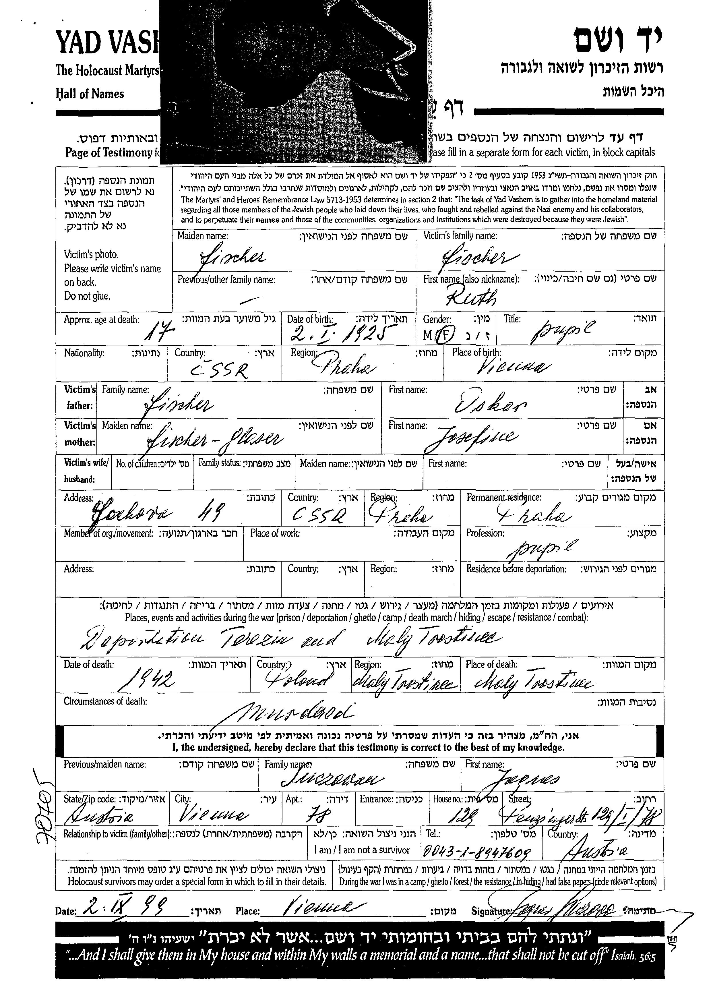 Yad Vashem - Pages of Testimony Names Memorial Collection