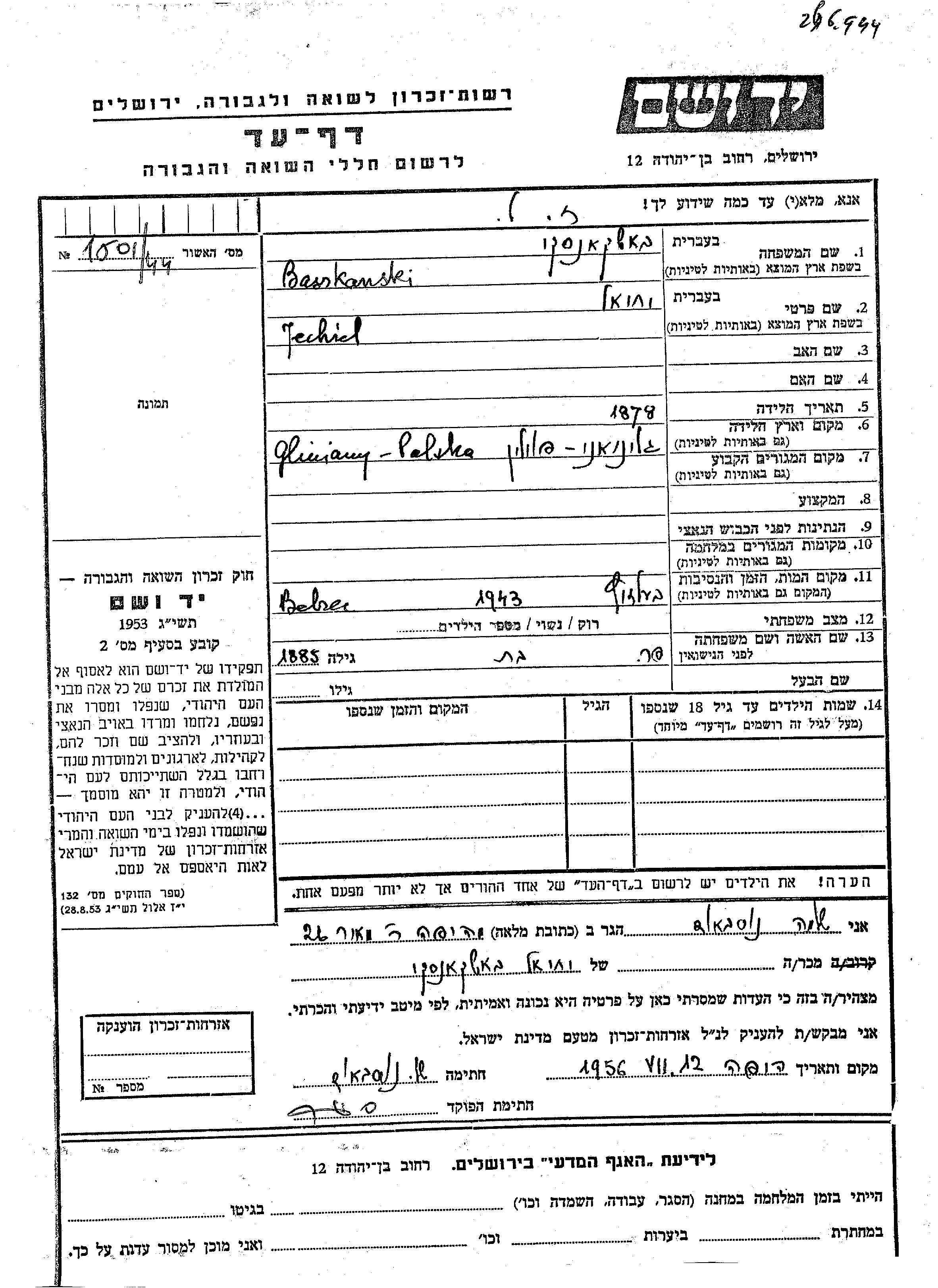 Yad Vashem - Pages of Testimony Names Memorial Collection