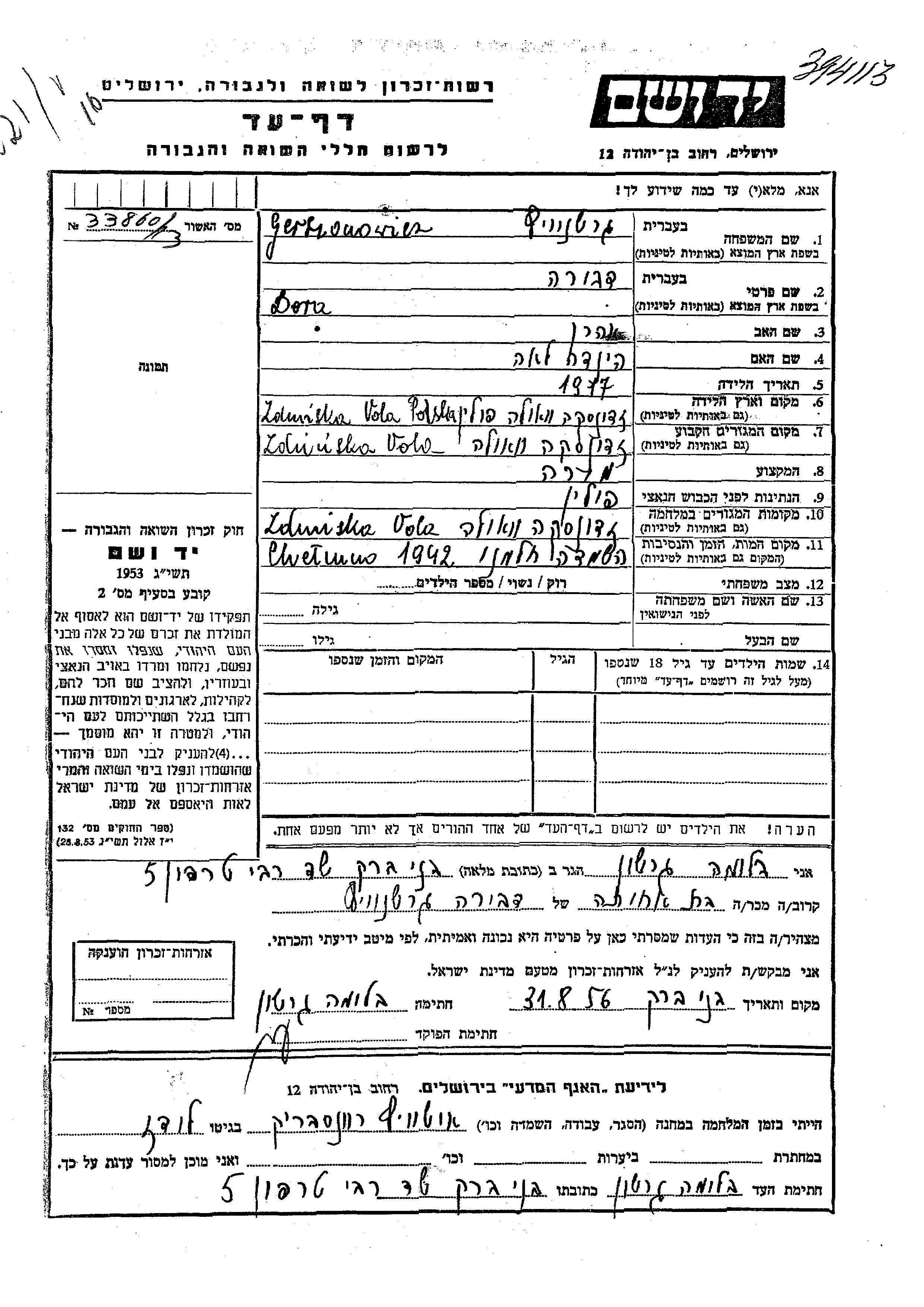 Yad Vashem - Pages of Testimony Names Memorial Collection