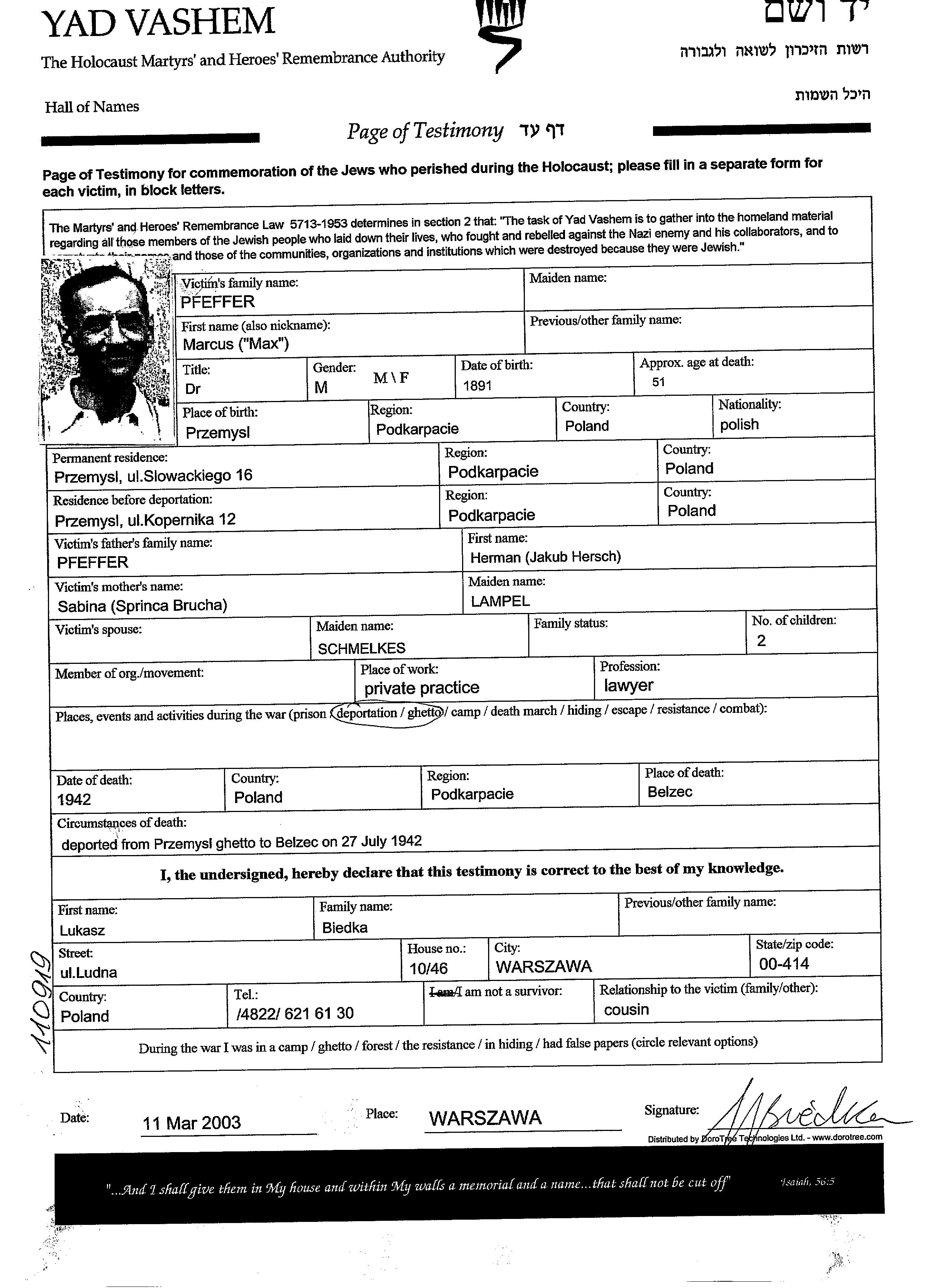 Recherche par lieu de résidence permanente avant la Shoah, ville, village, département, région ou pays.