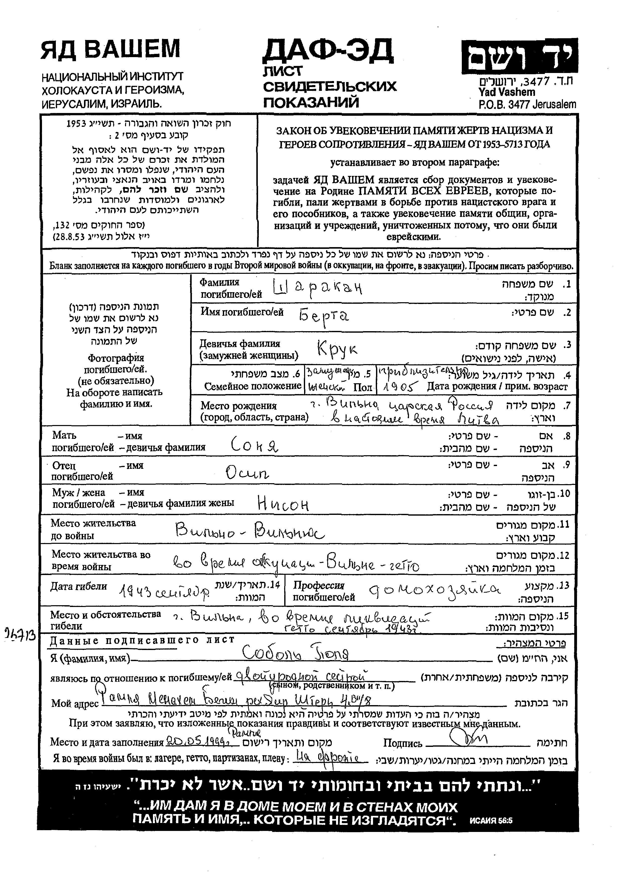 Recherche par date de la mort pendant la période de la Shoah: 1933-1945. Sélectionnez 'Exact'; dans la liste pour rechercher l'année exacte, ou sélectionner '+/- 2 ans'; ou '+/- 5 ans
