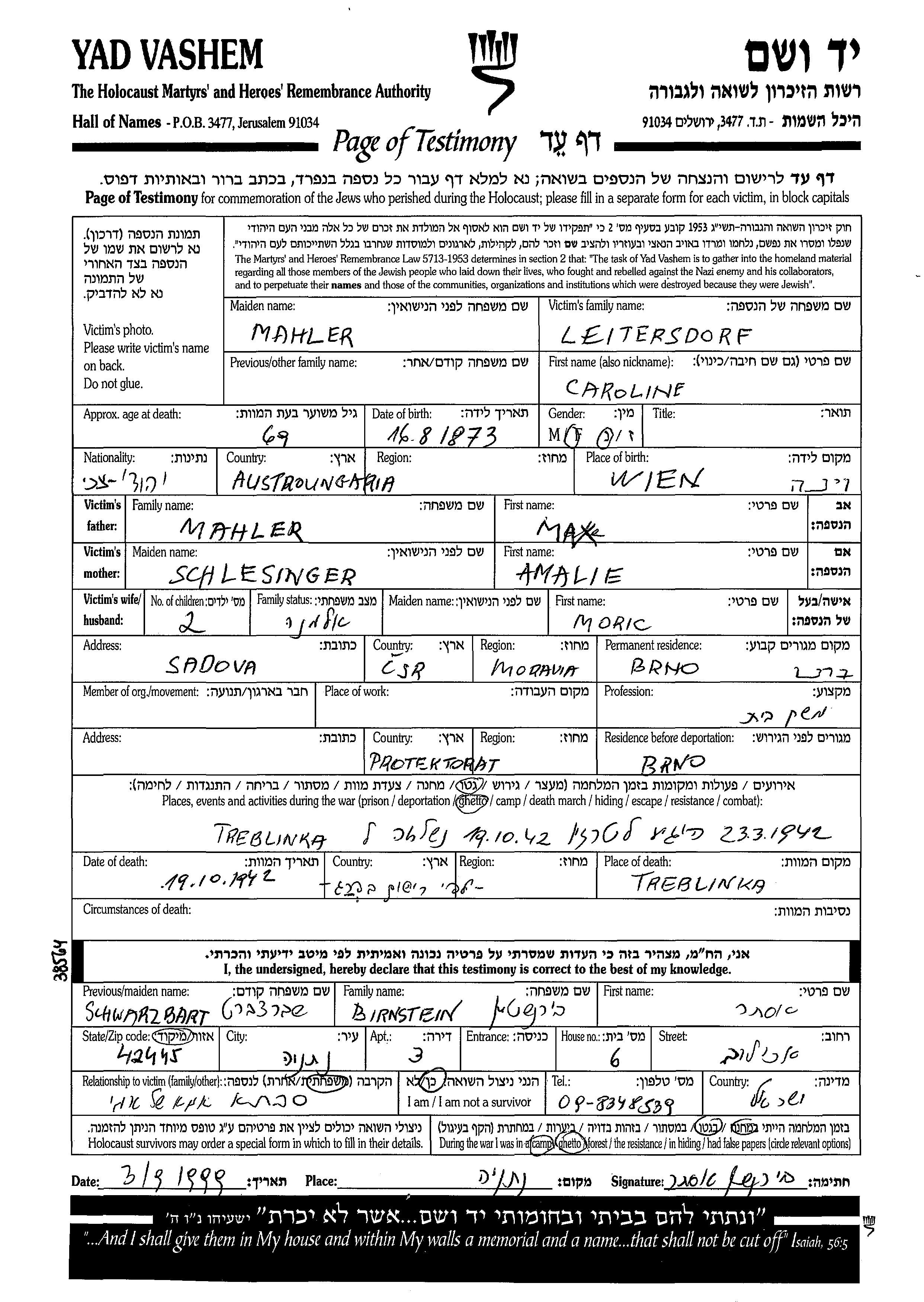 Yad Vashem - Pages of Testimony Names Memorial Collection