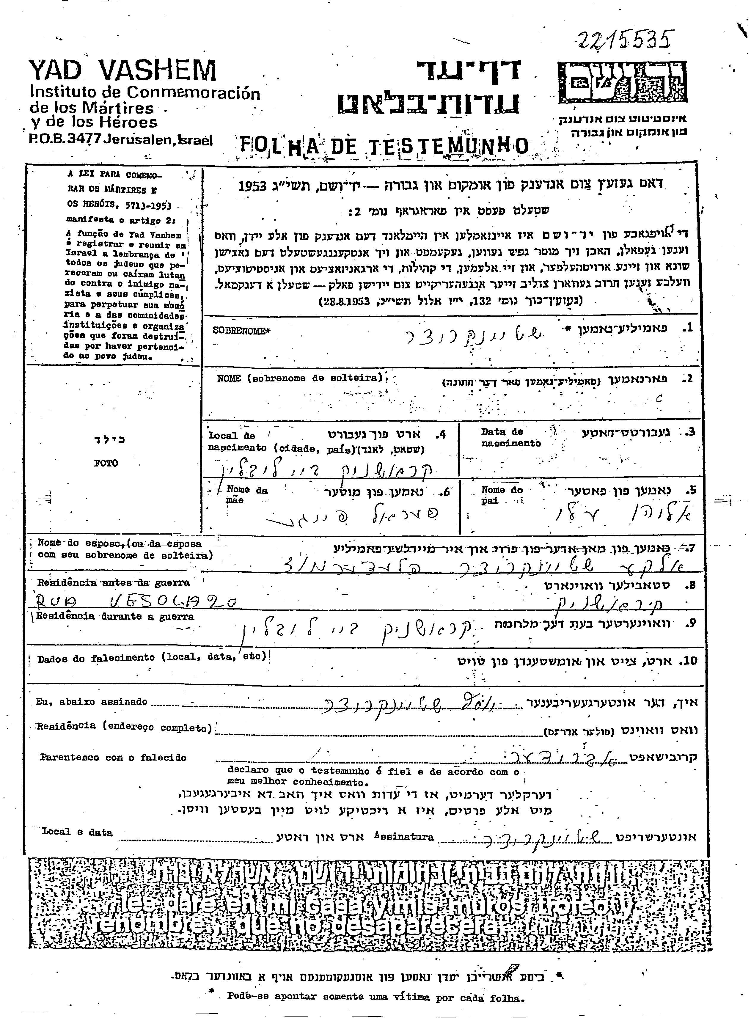 Yad Vashem - Pages of Testimony Names Memorial Collection