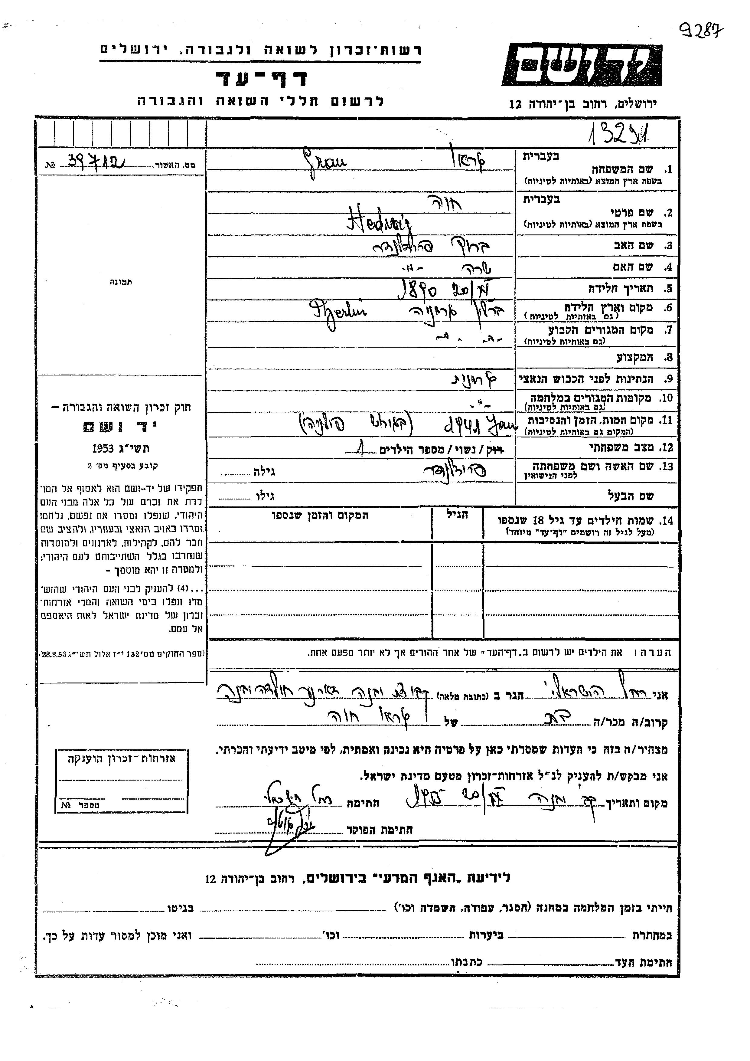 Yad Vashem - Pages of Testimony Names Memorial Collection