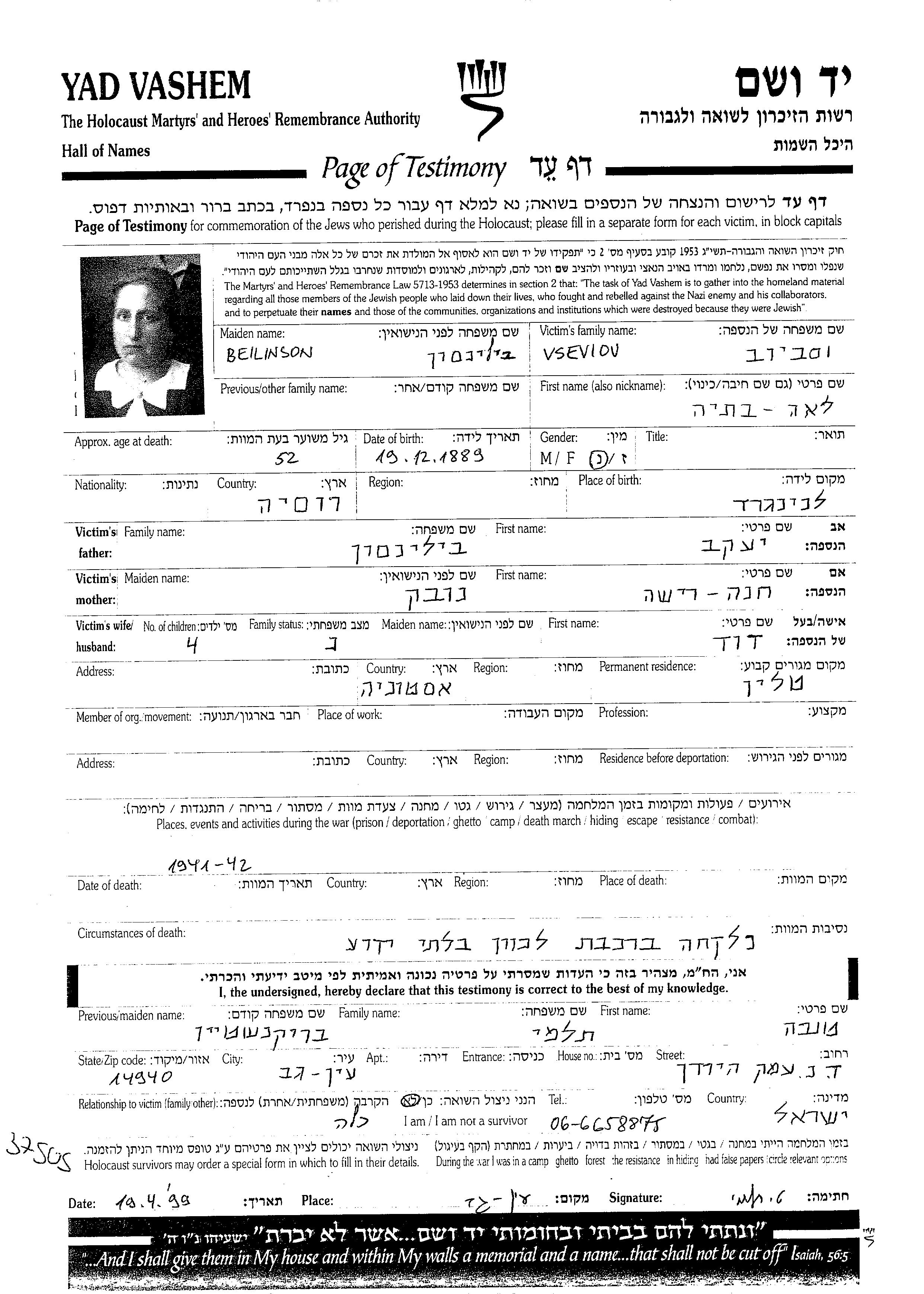 Yad Vashem - Pages of Testimony Names Memorial Collection