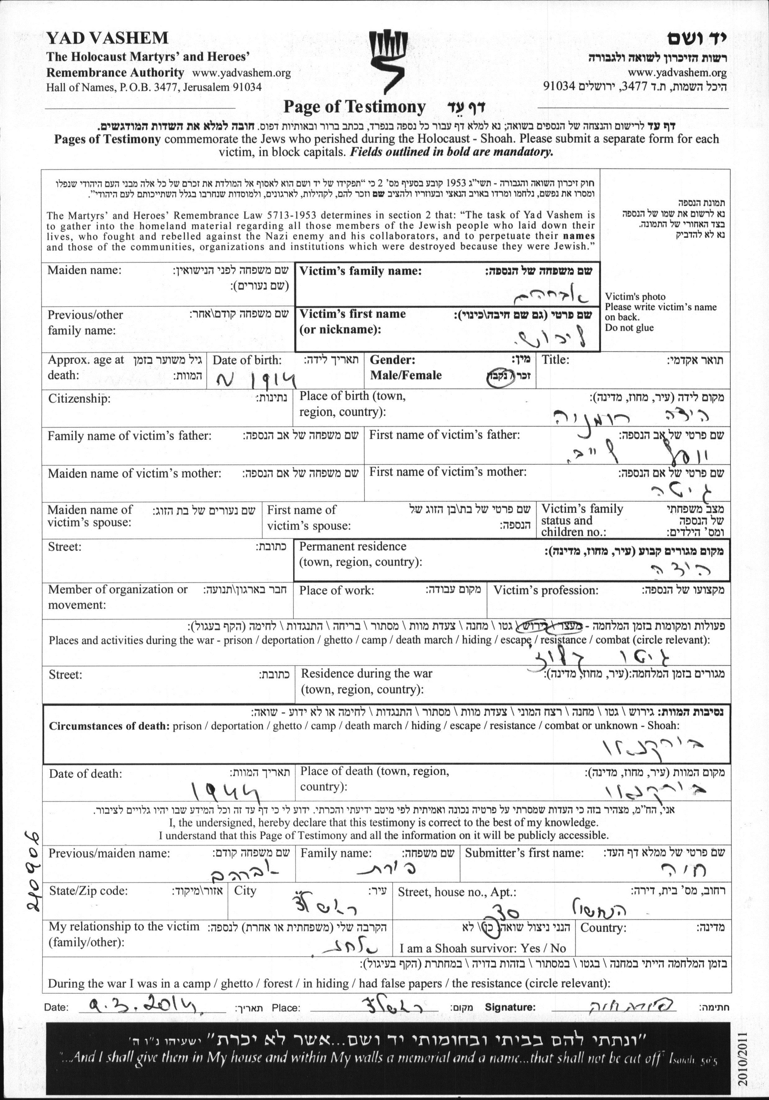 Yad Vashem - Pages of Testimony Names Memorial Collection