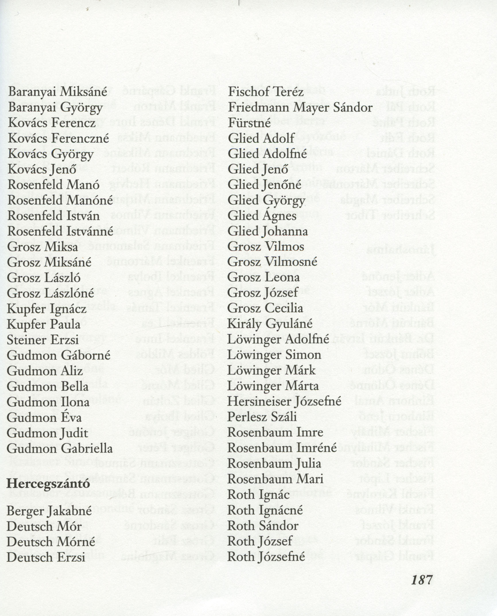 | Glied | Agnes | 1929 | Hercegszanto, Hongrie | Liste des Juifs de Hongrie assassinés |