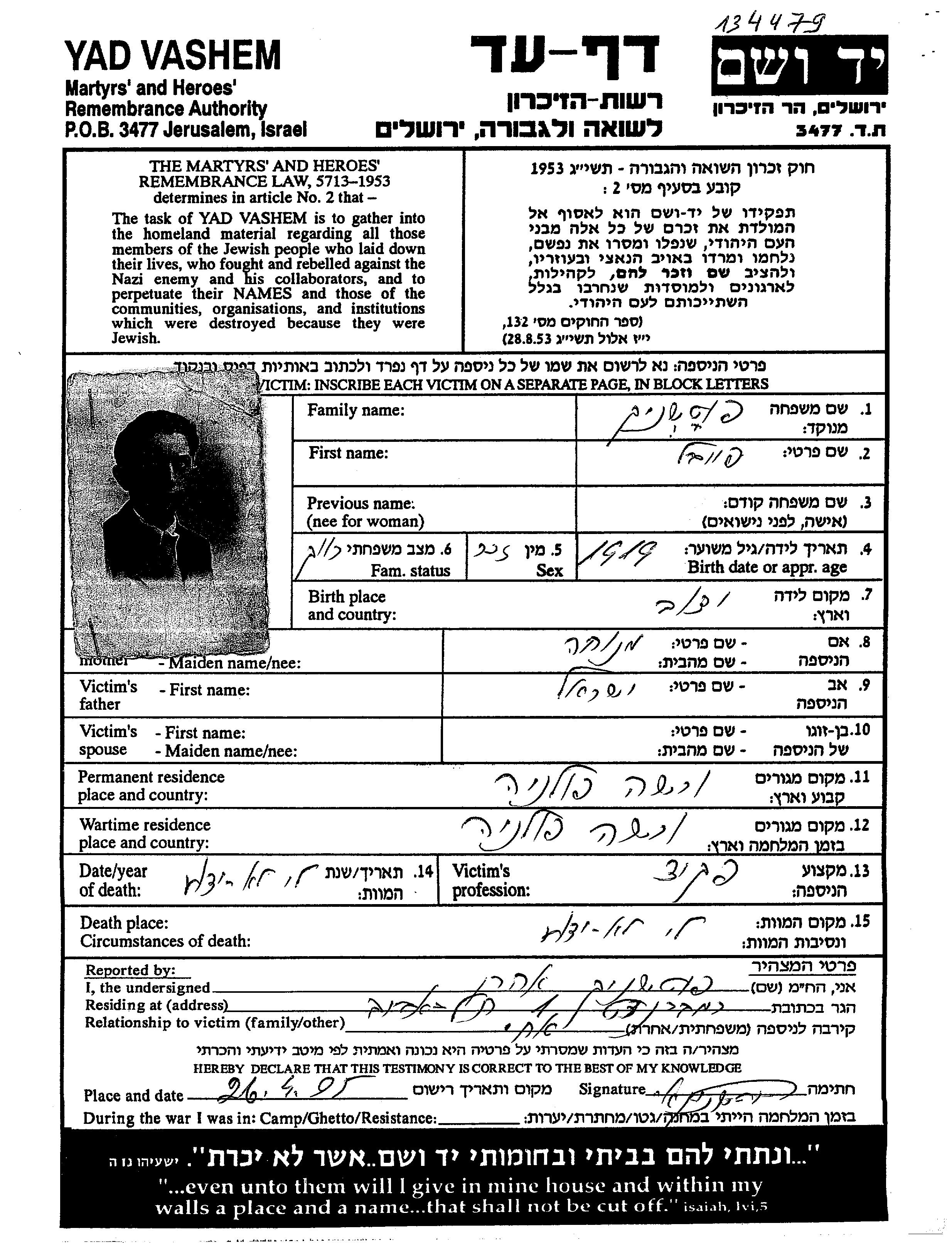 Yad Vashem - Pages of Testimony Names Memorial Collection