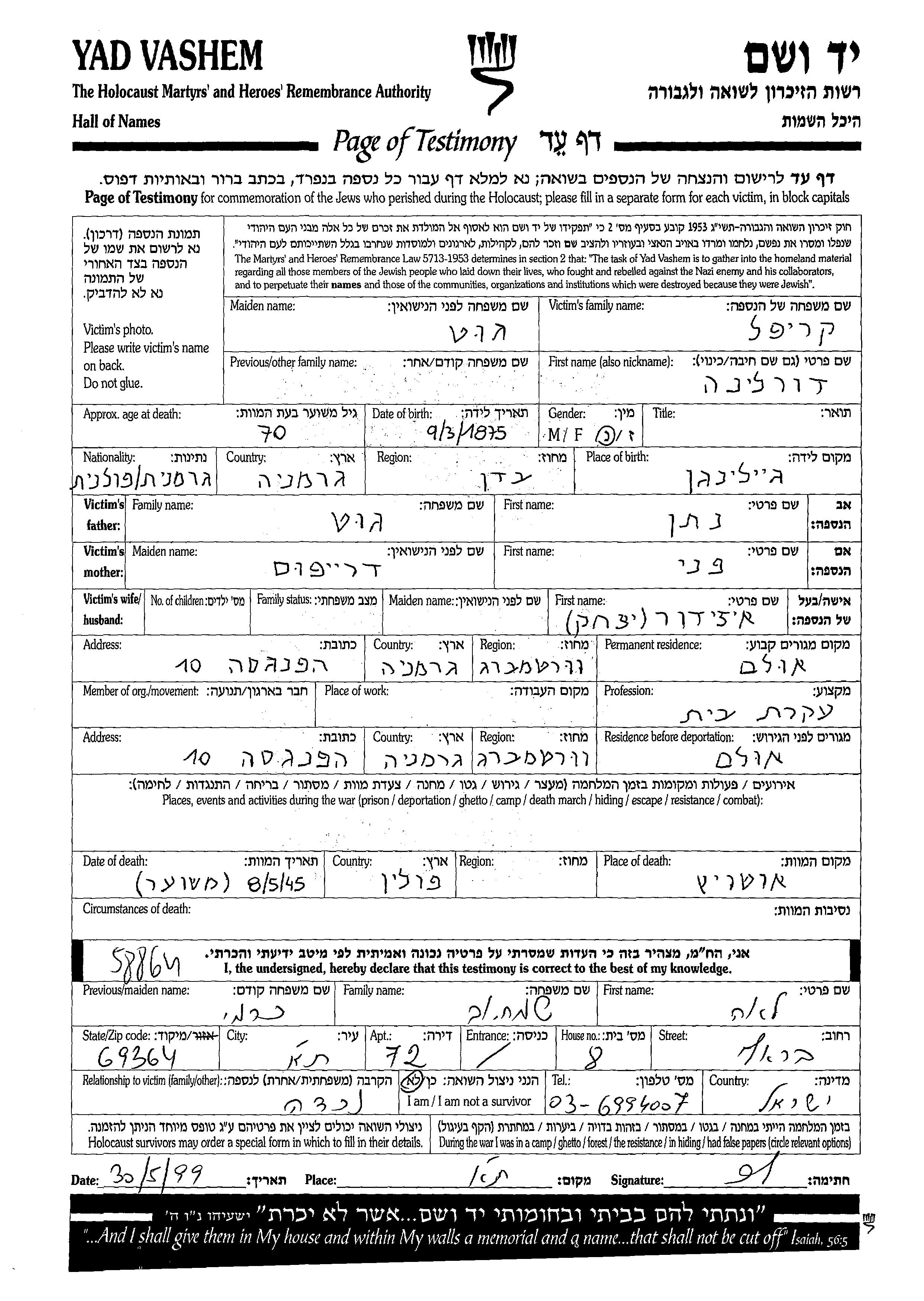 Recherche par date de la mort pendant la période de la Shoah: 1933-1945. Sélectionnez 'Exact'; dans la liste pour rechercher l'année exacte, ou sélectionner '+/- 2 ans'; ou '+/- 5 ans