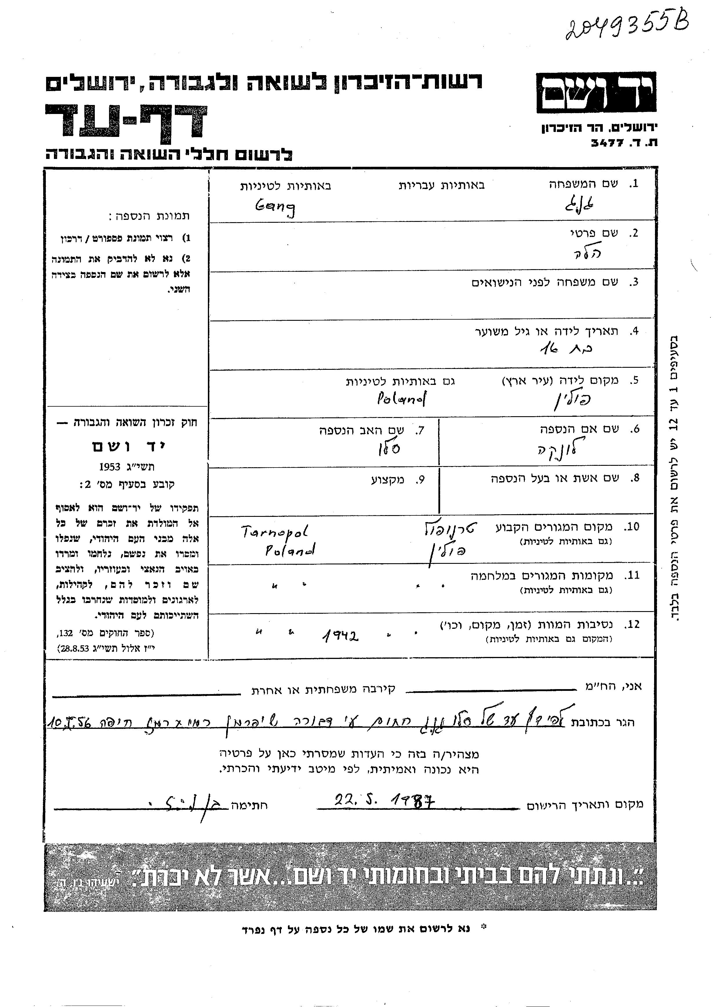Recherche par nom du dépositeur de la Feuille de témoignage. Cette recherché indique aussi les noms de jeunes filles.