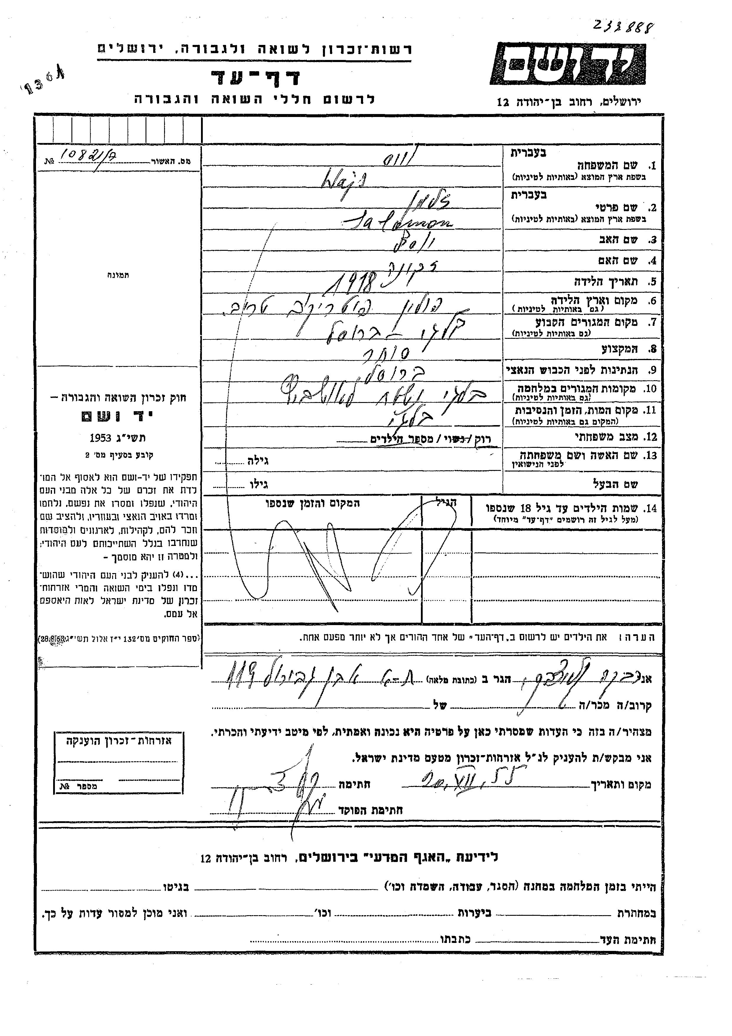 Yad Vashem - Pages of Testimony Names Memorial Collection