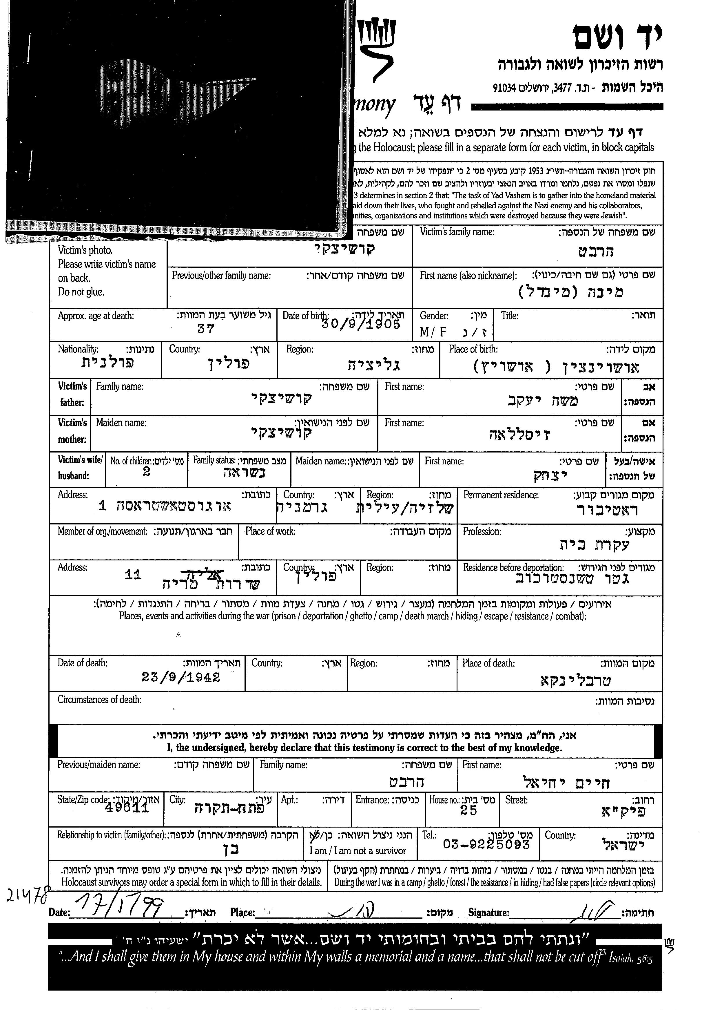 Yad Vashem - Pages of Testimony Names Memorial Collection