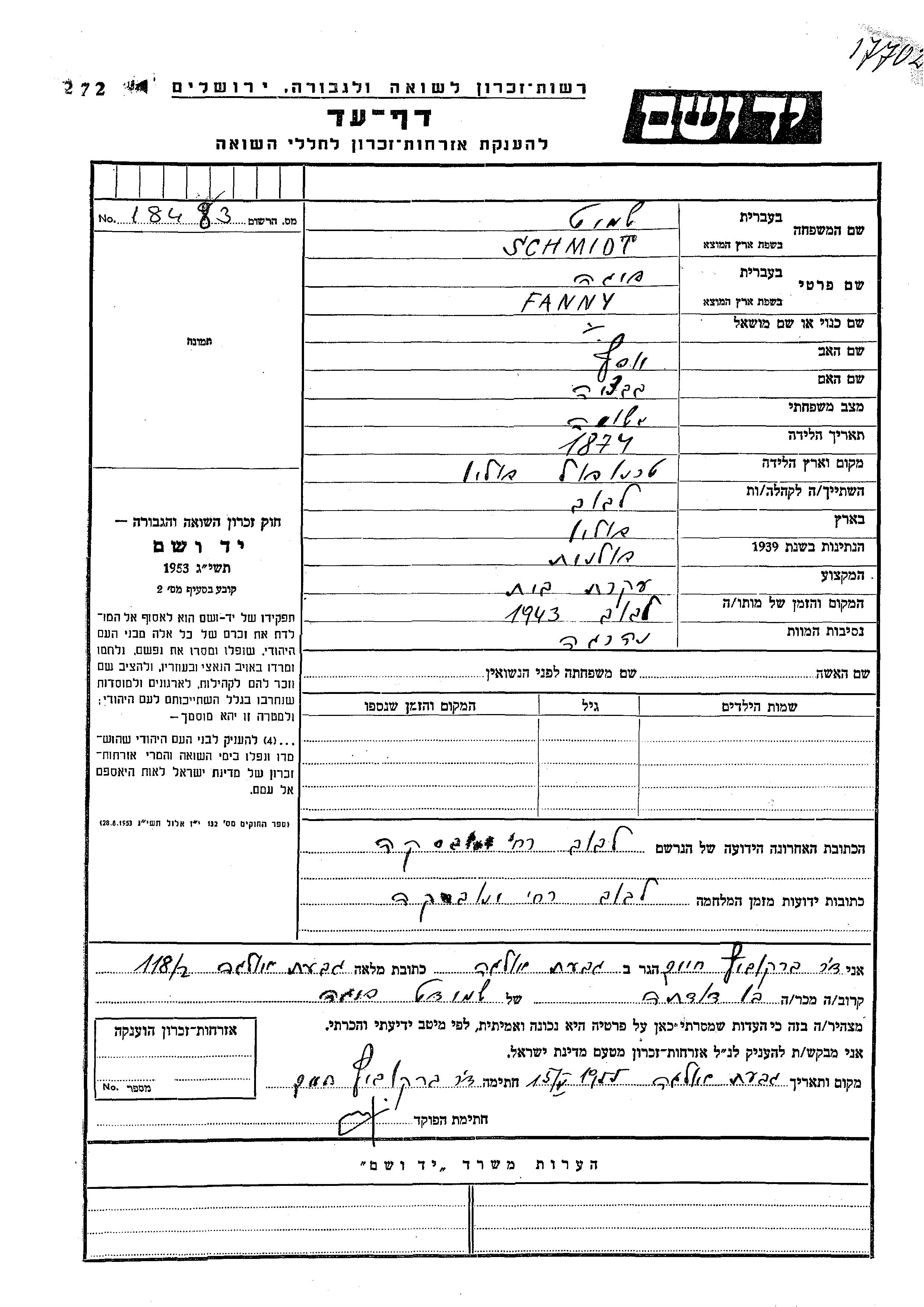 Yad Vashem - Pages of Testimony Names Memorial Collection