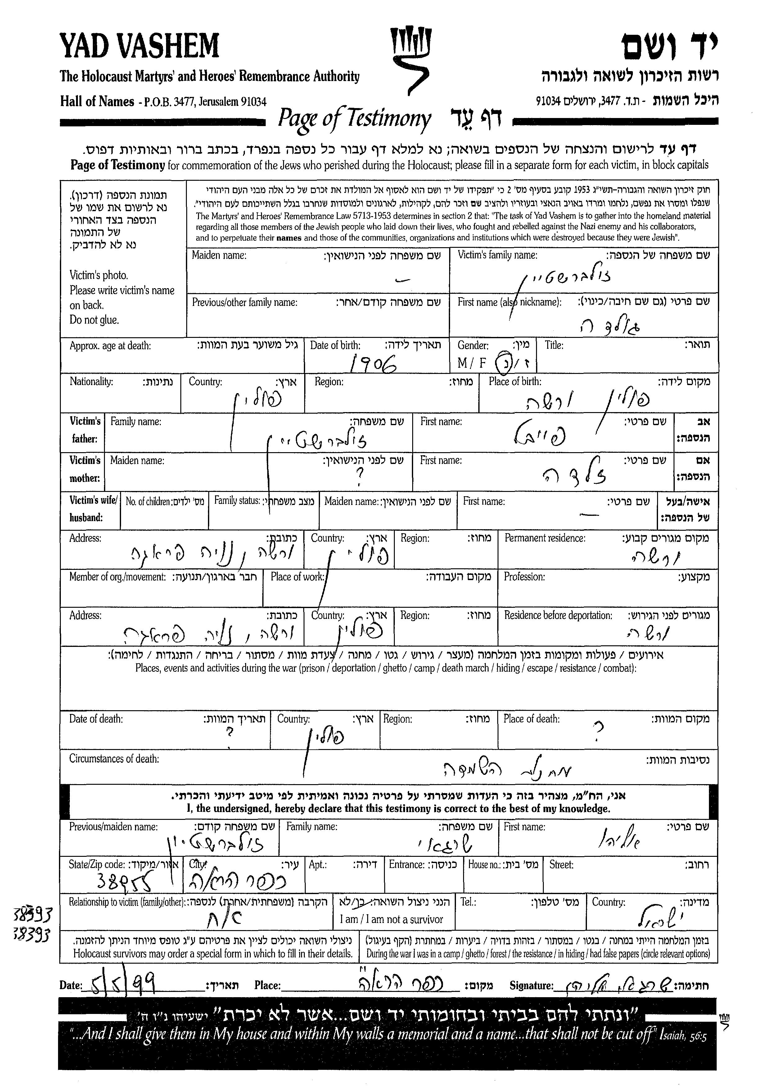 Yad Vashem - Pages of Testimony Names Memorial Collection
