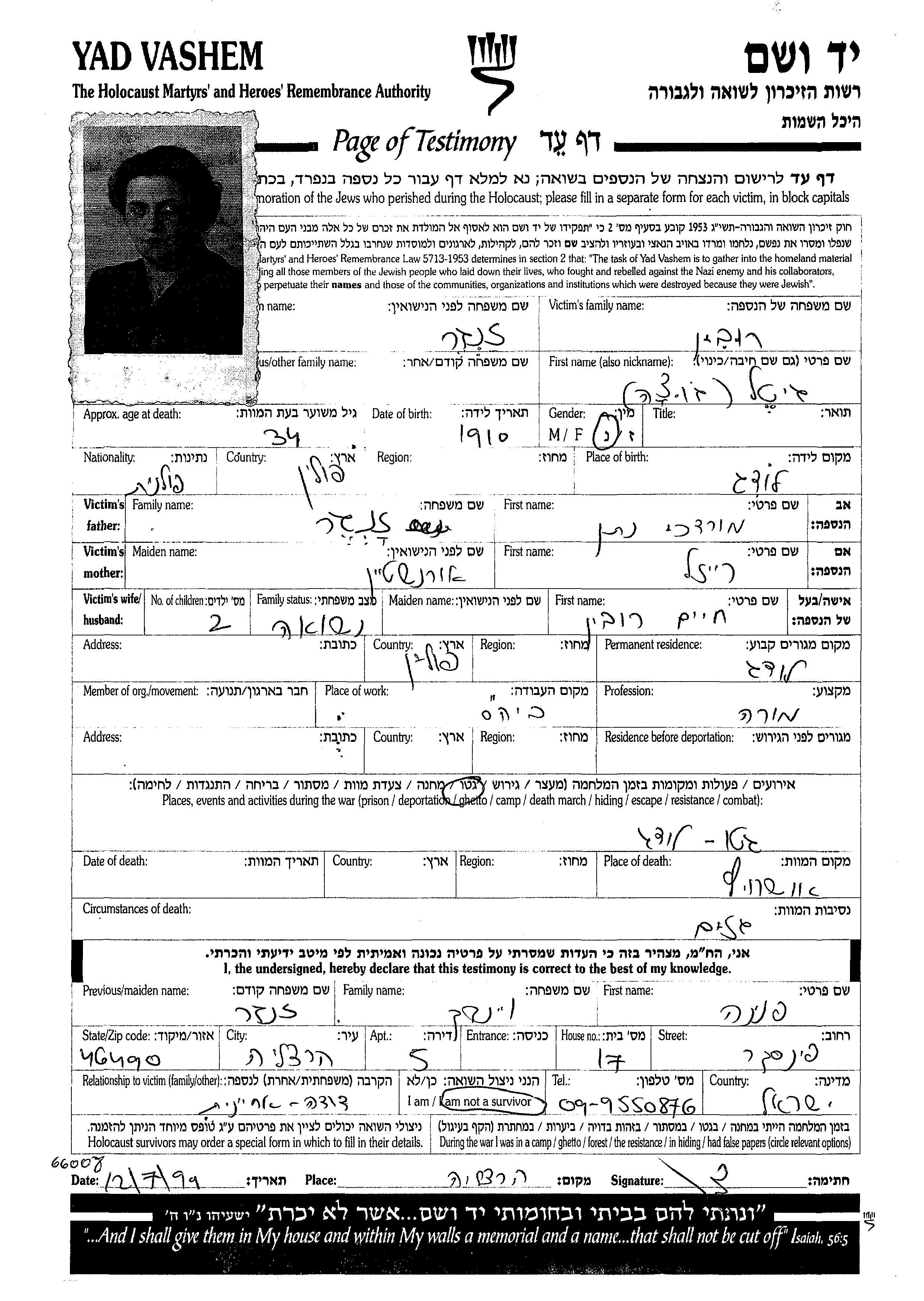 Yad Vashem - Pages of Testimony Names Memorial Collection