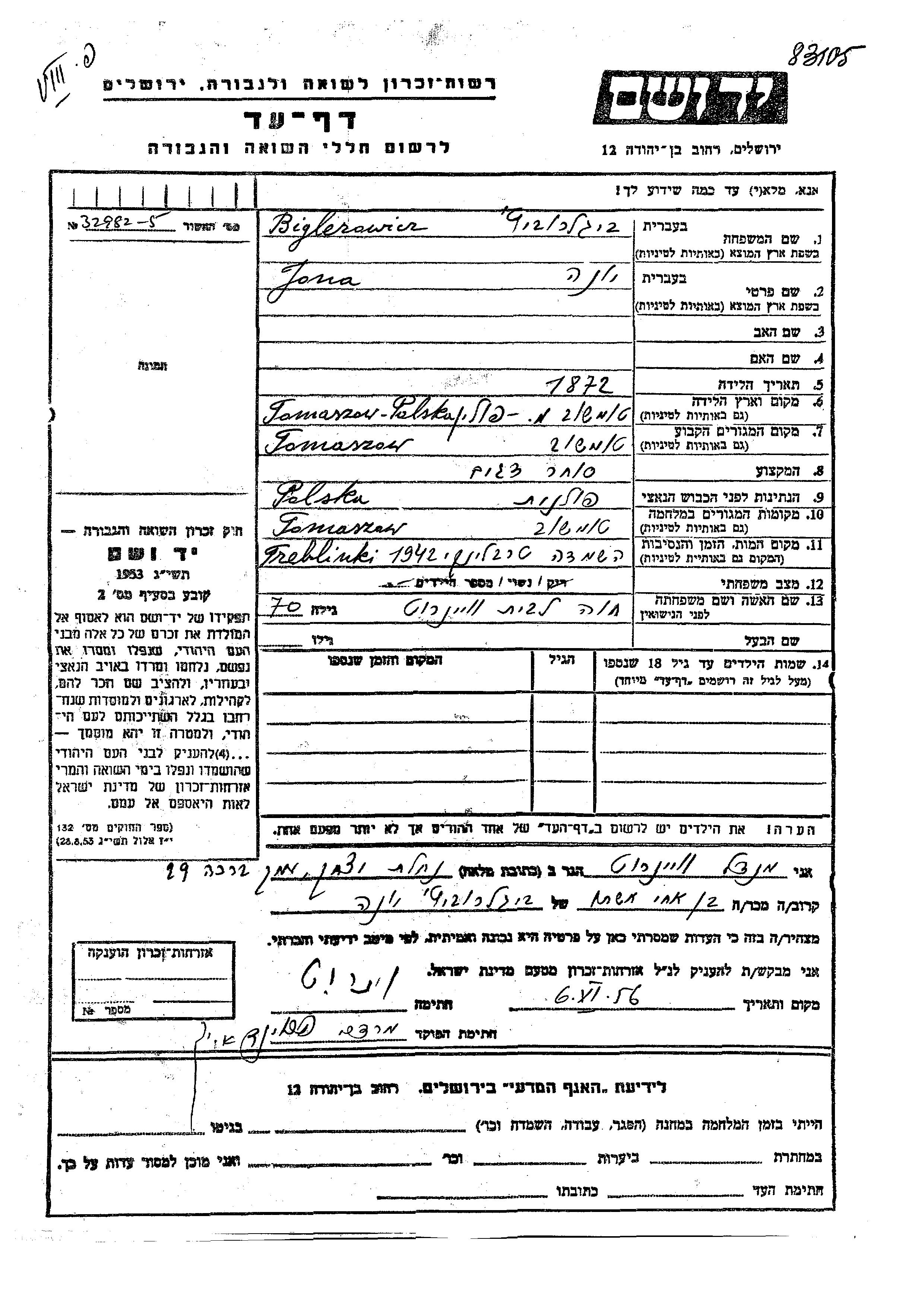Yad Vashem - Pages of Testimony Names Memorial Collection