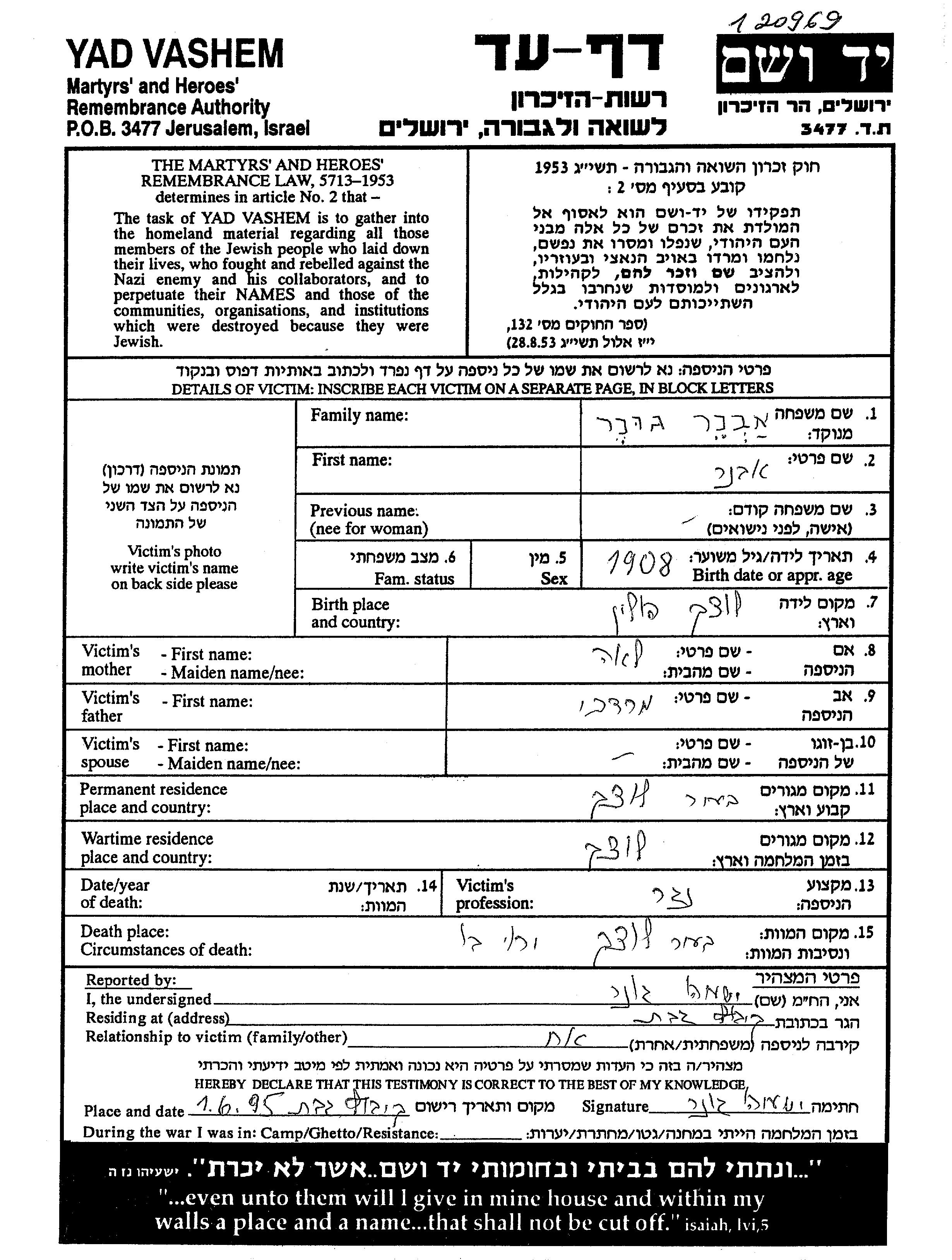 Yad Vashem - Pages of Testimony Names Memorial Collection