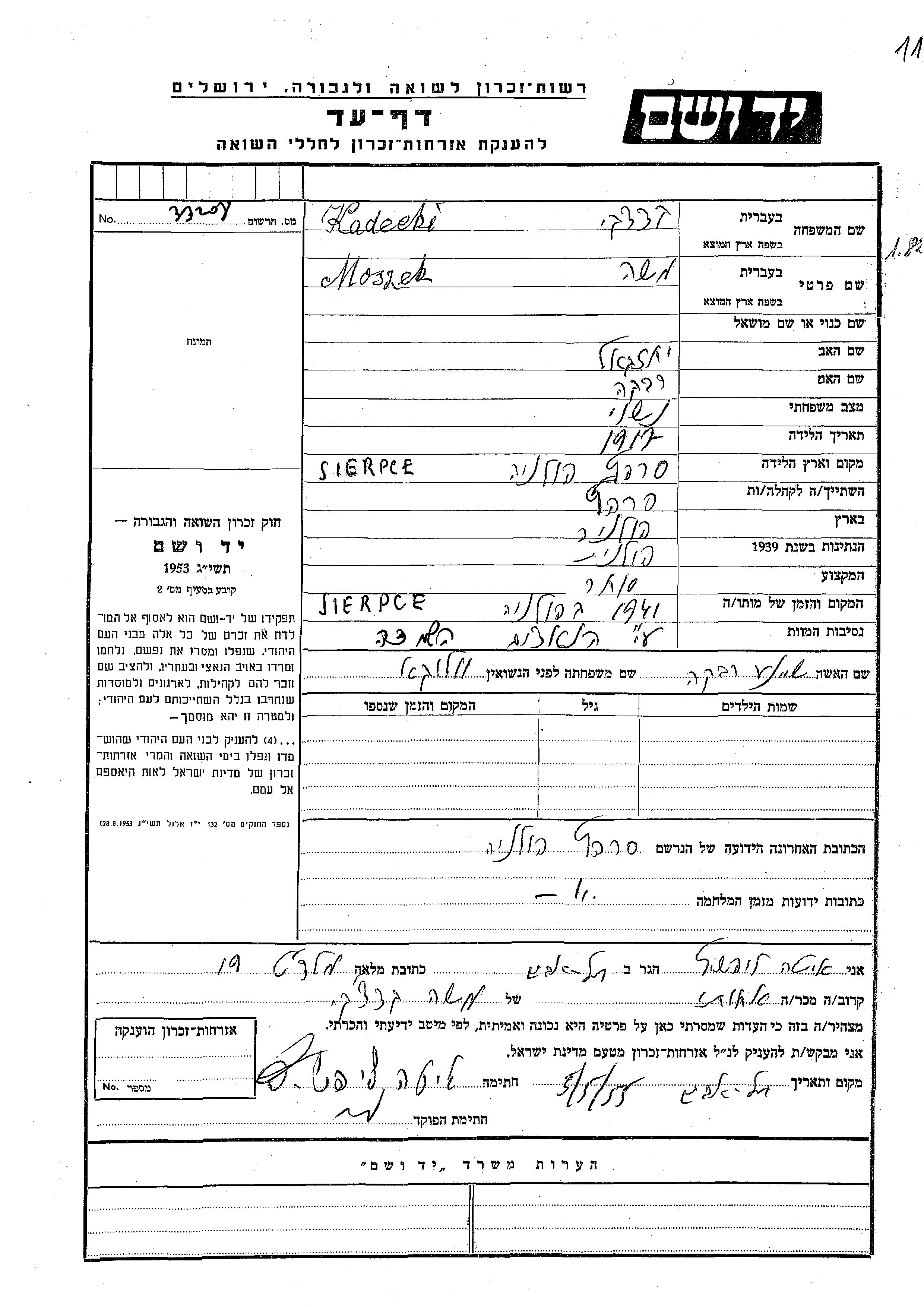 Moshe a été assassiné pendant la Shoah. Lieu de la mort: Sierpc, Pologne.