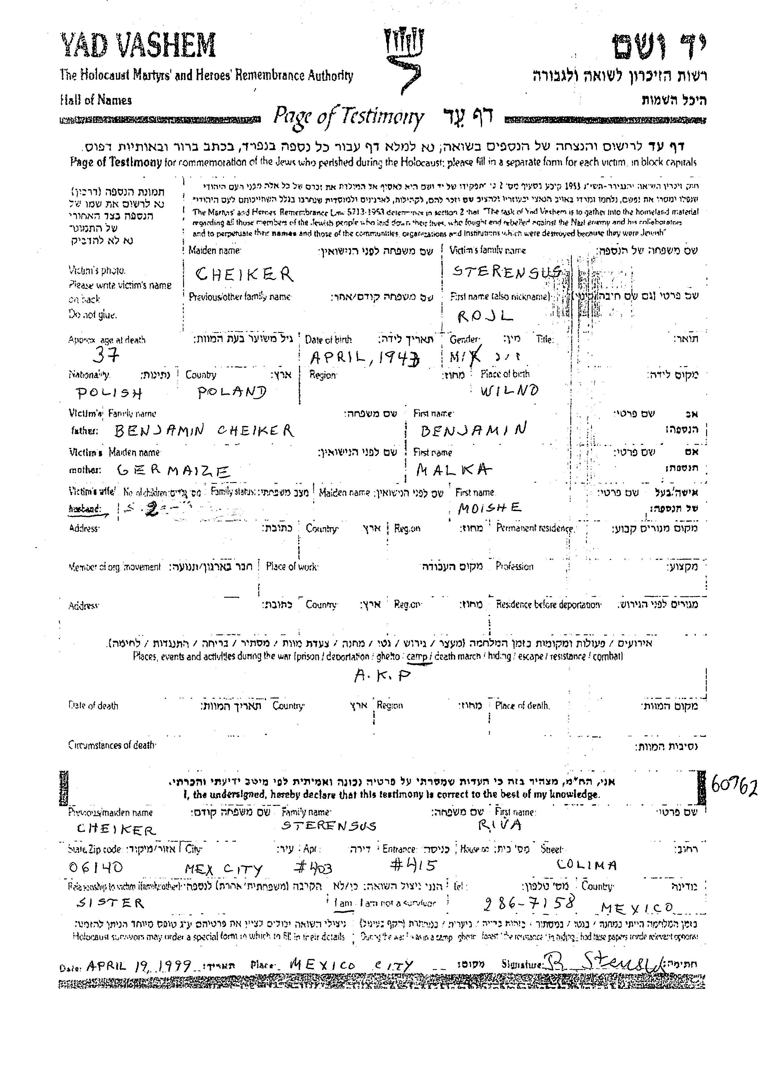 Yad Vashem - Pages of Testimony Names Memorial Collection