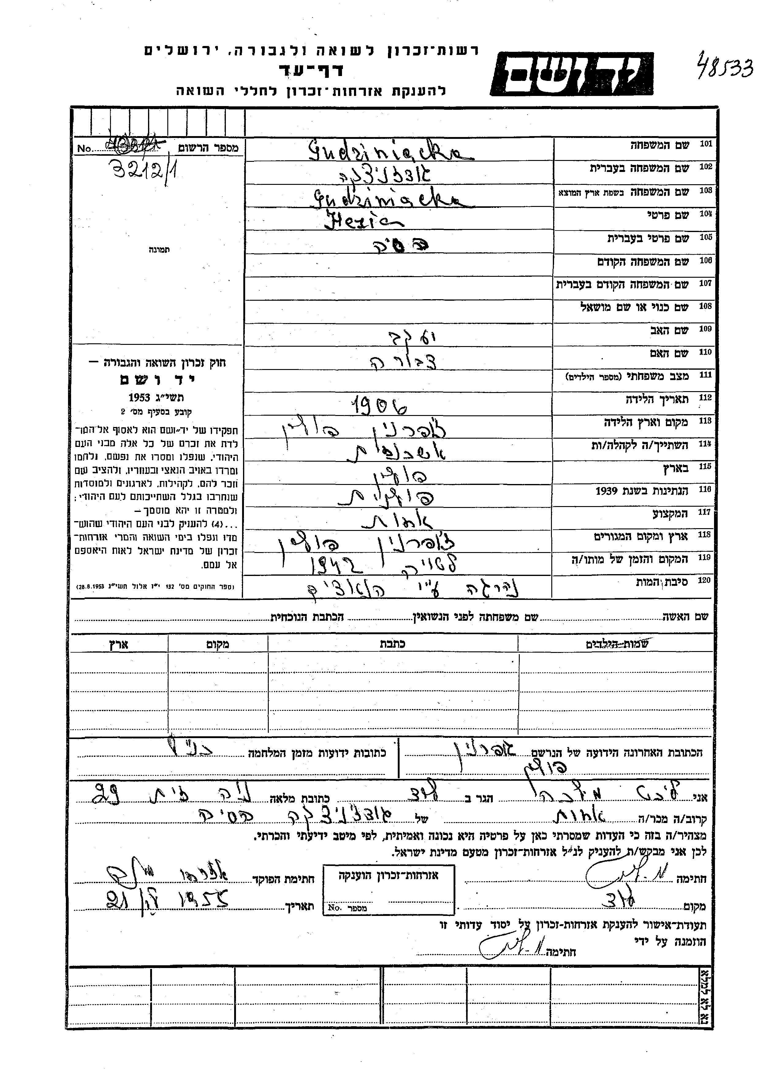 Yad Vashem - Pages of Testimony Names Memorial Collection
