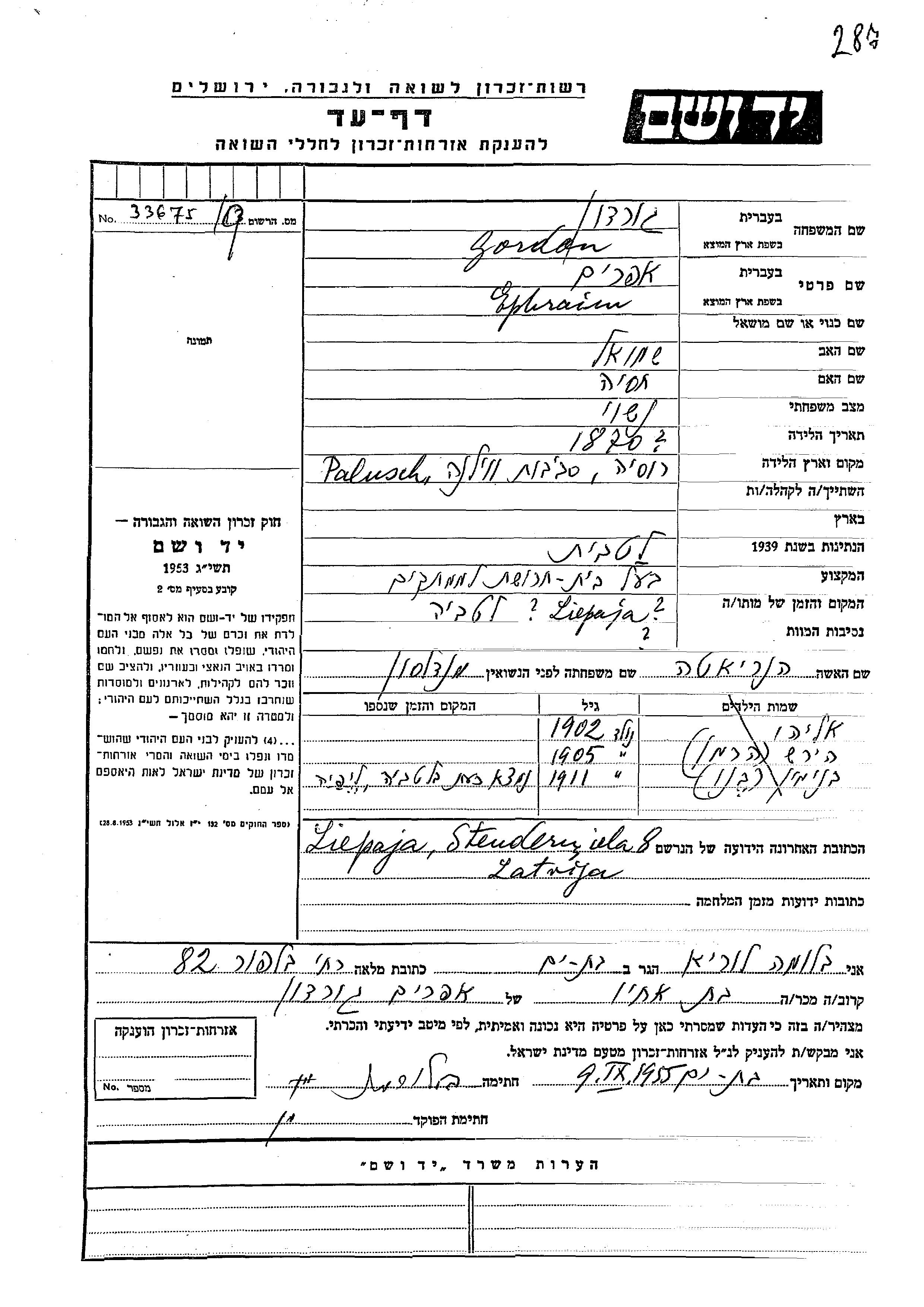 Ephraim a été assassiné pendant la Shoah. Lieu de la mort: Liepaja, Lettonie.