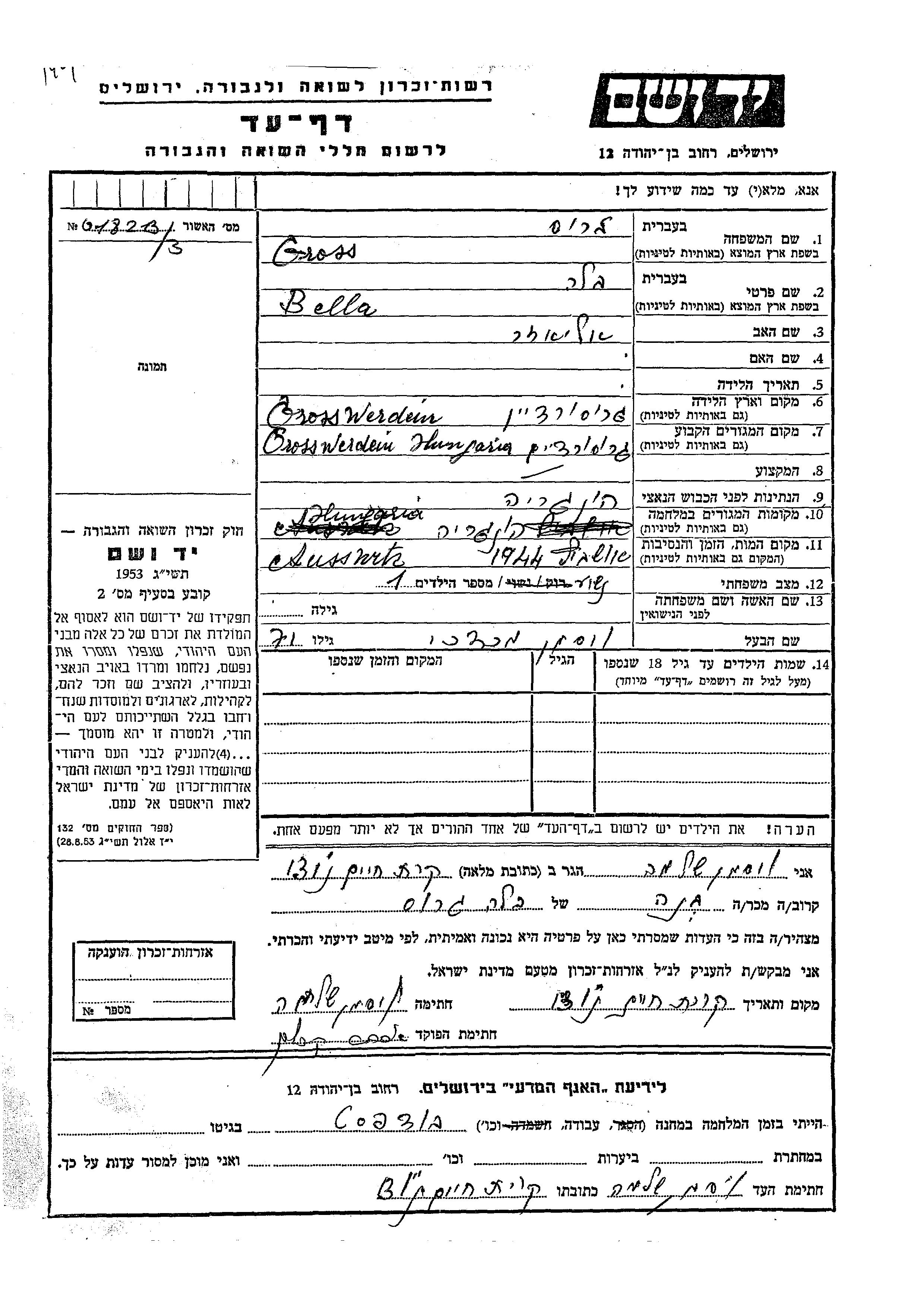 Bella a été assassinée pendant la Shoah. Lieu de la mort: Auschwitz, Pologne en 1944.