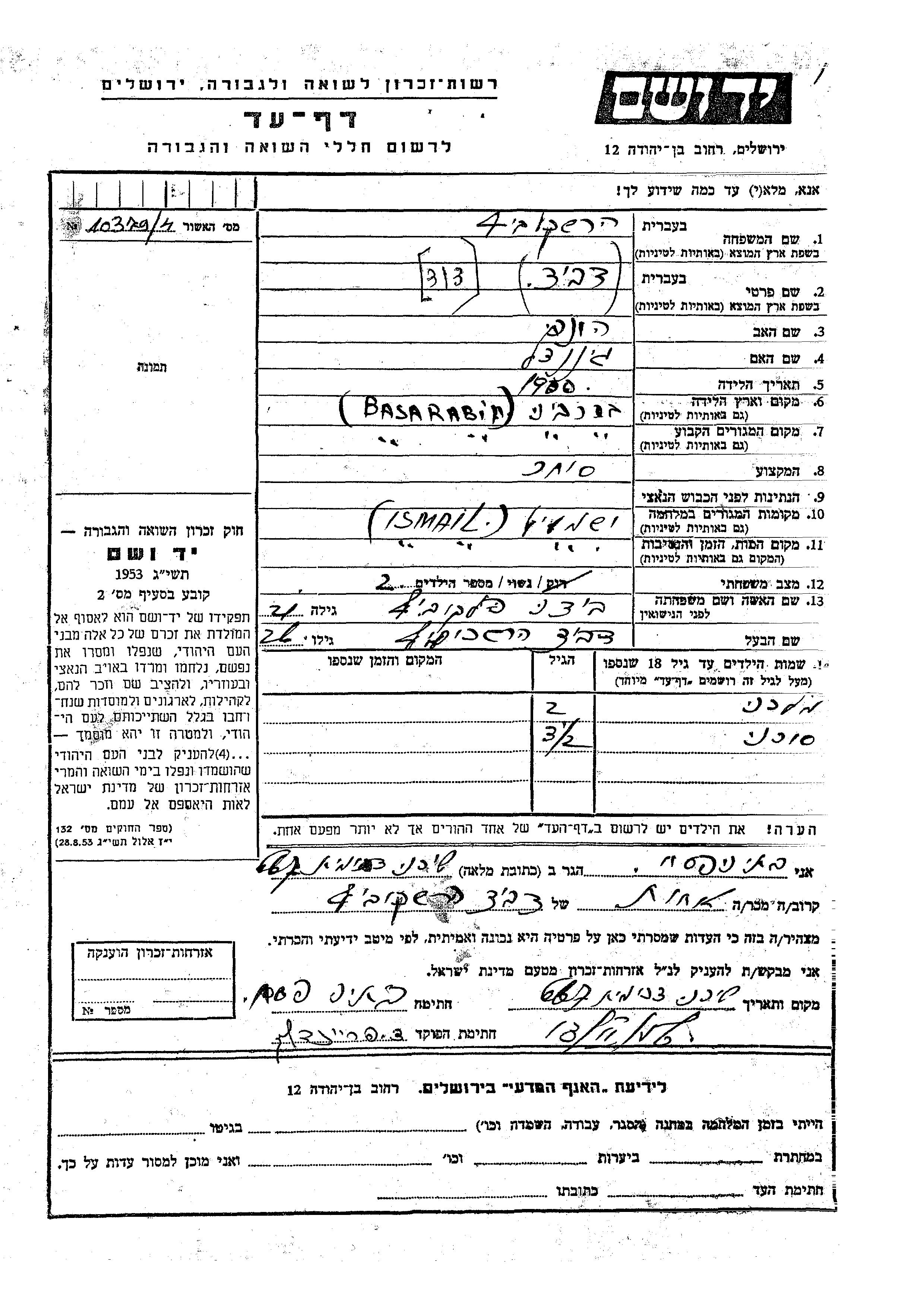 David Hershkovitz est né à Bessarabia, Roumanie en 1900, fils de Khanokh et de Ginendel. Il était Commerçant/e et Mariée à Bice. Avant la seconde guerre mondiale il vivait à Bessarabia, Roumanie. Au cours de la guerre, il était à Ismail, Roumanie.