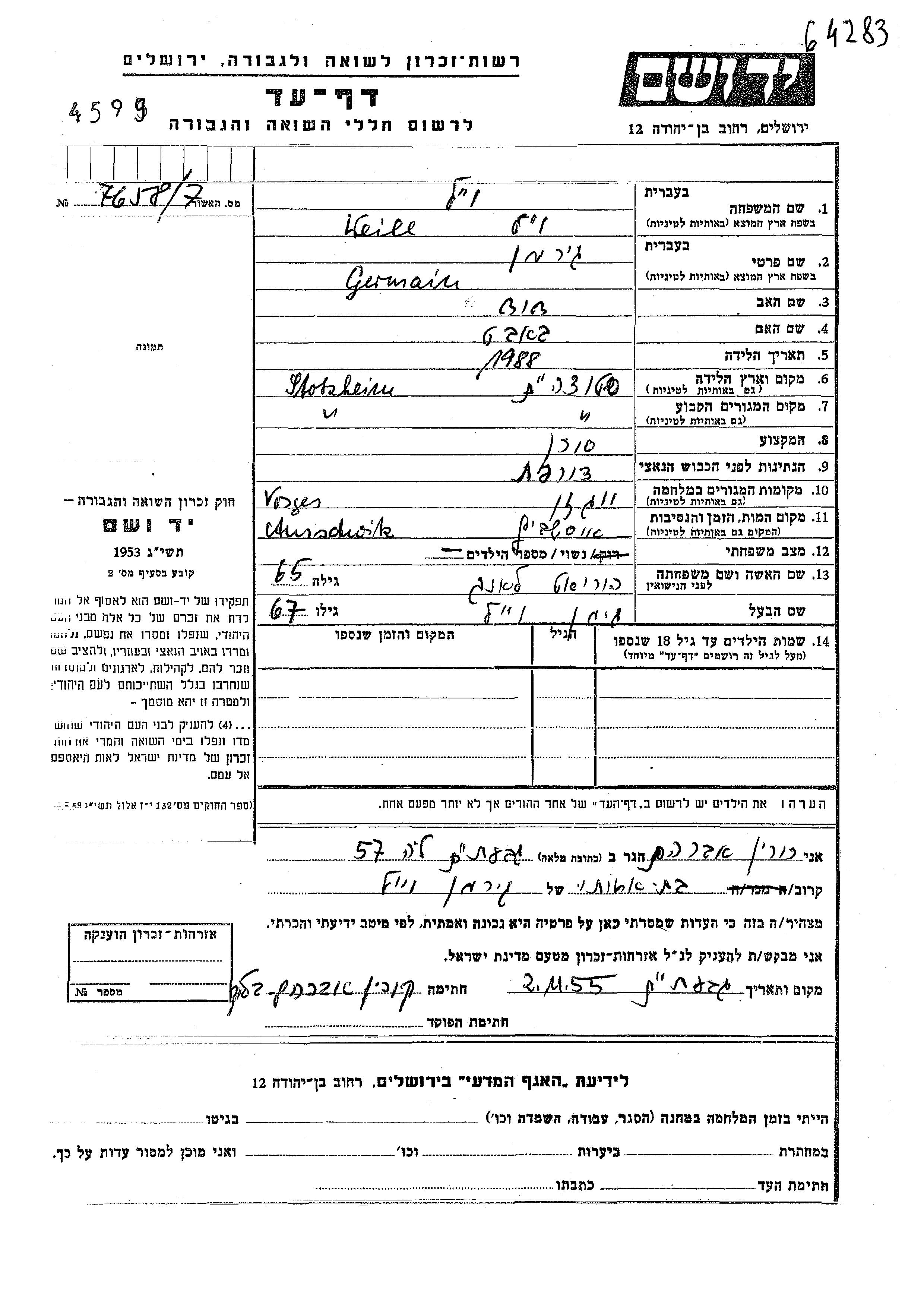 Yad Vashem - Pages of Testimony Names Memorial Collection