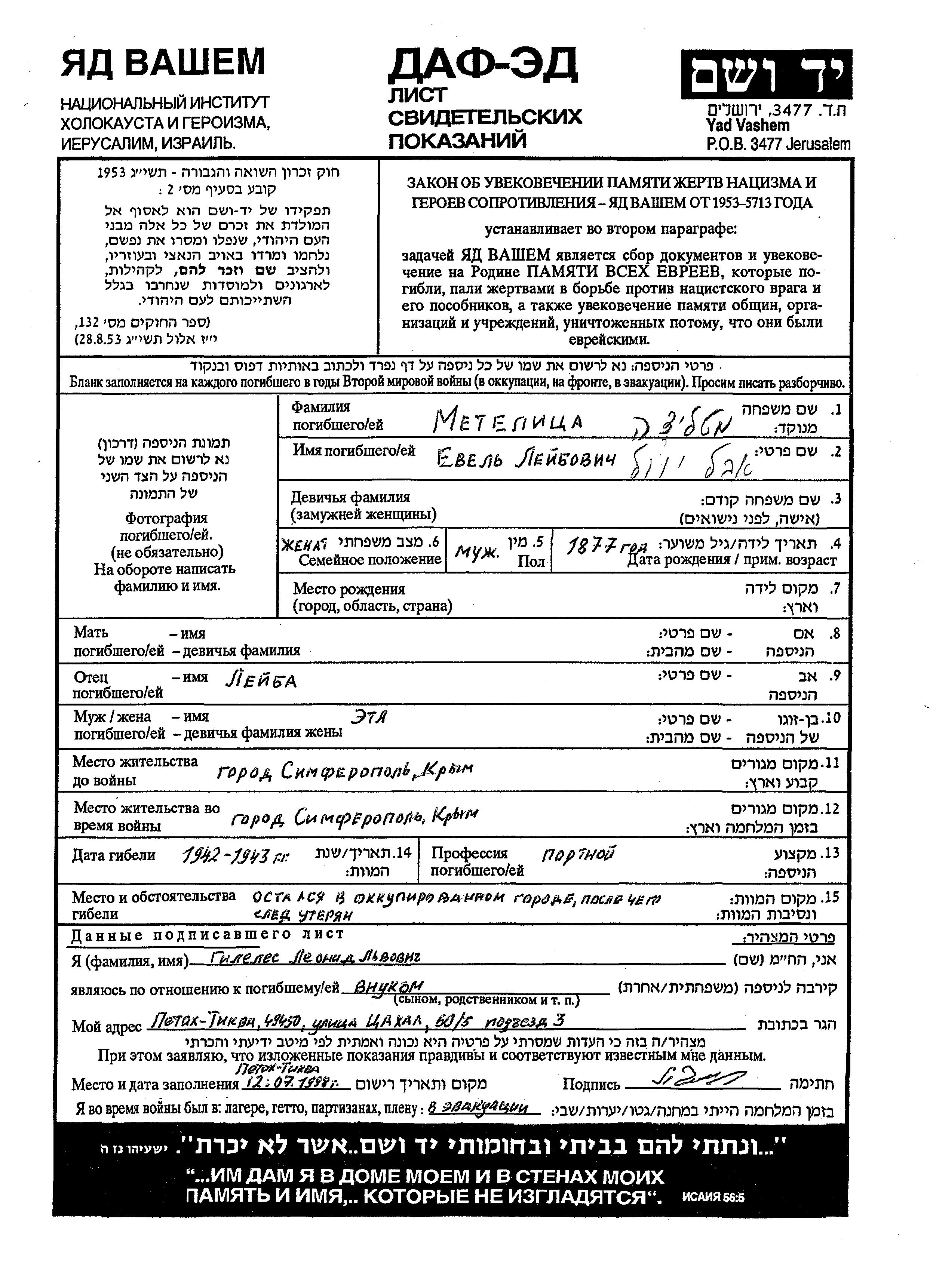 Recherche par date de la mort pendant la période de la Shoah: 1933-1945. Sélectionnez 'Exact'; dans la liste pour rechercher l'année exacte, ou sélectionner '+/- 2 ans'; ou '+/- 5 ans